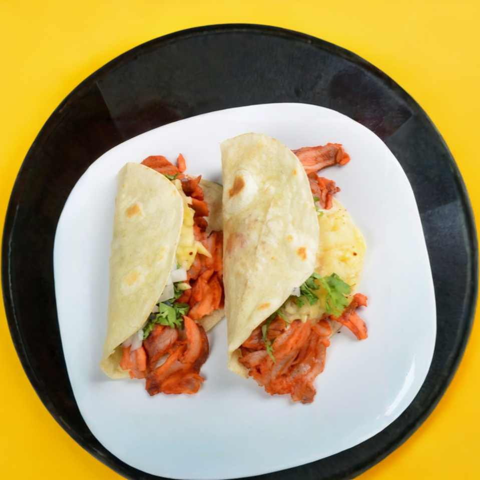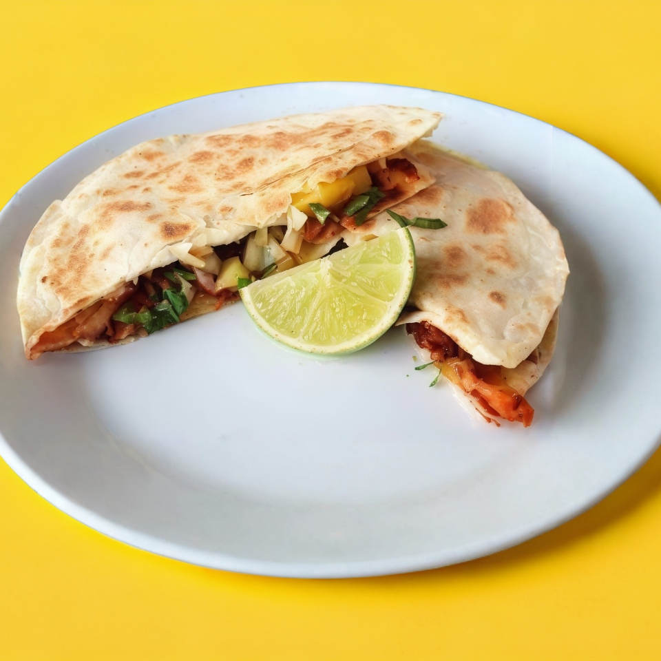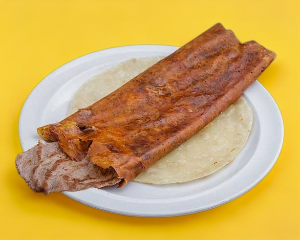 Taco estilo árabe, con carne de arrachera en pan pita o tortilla.