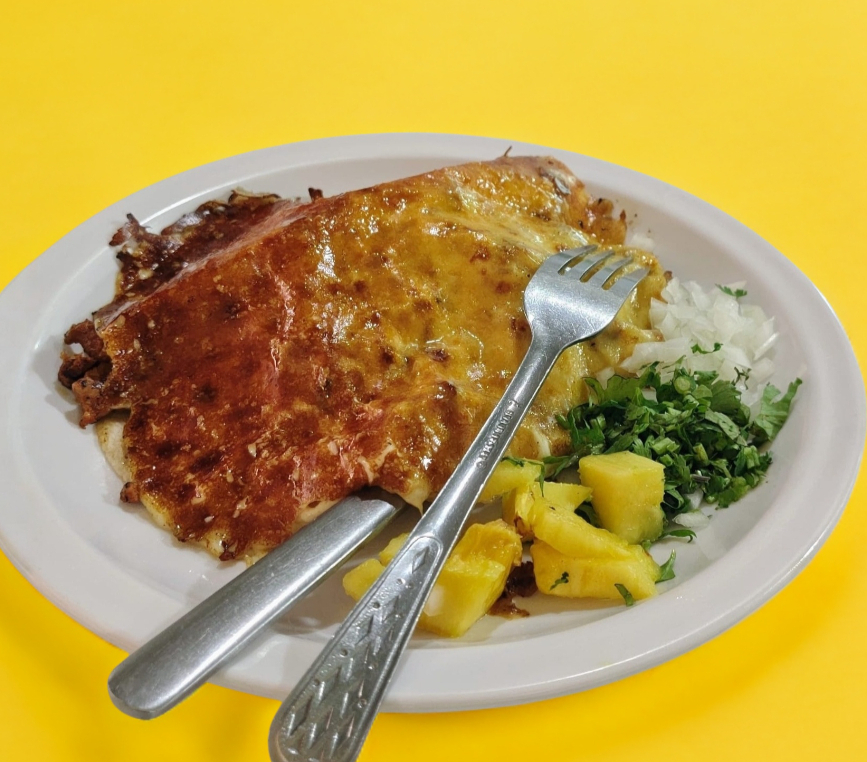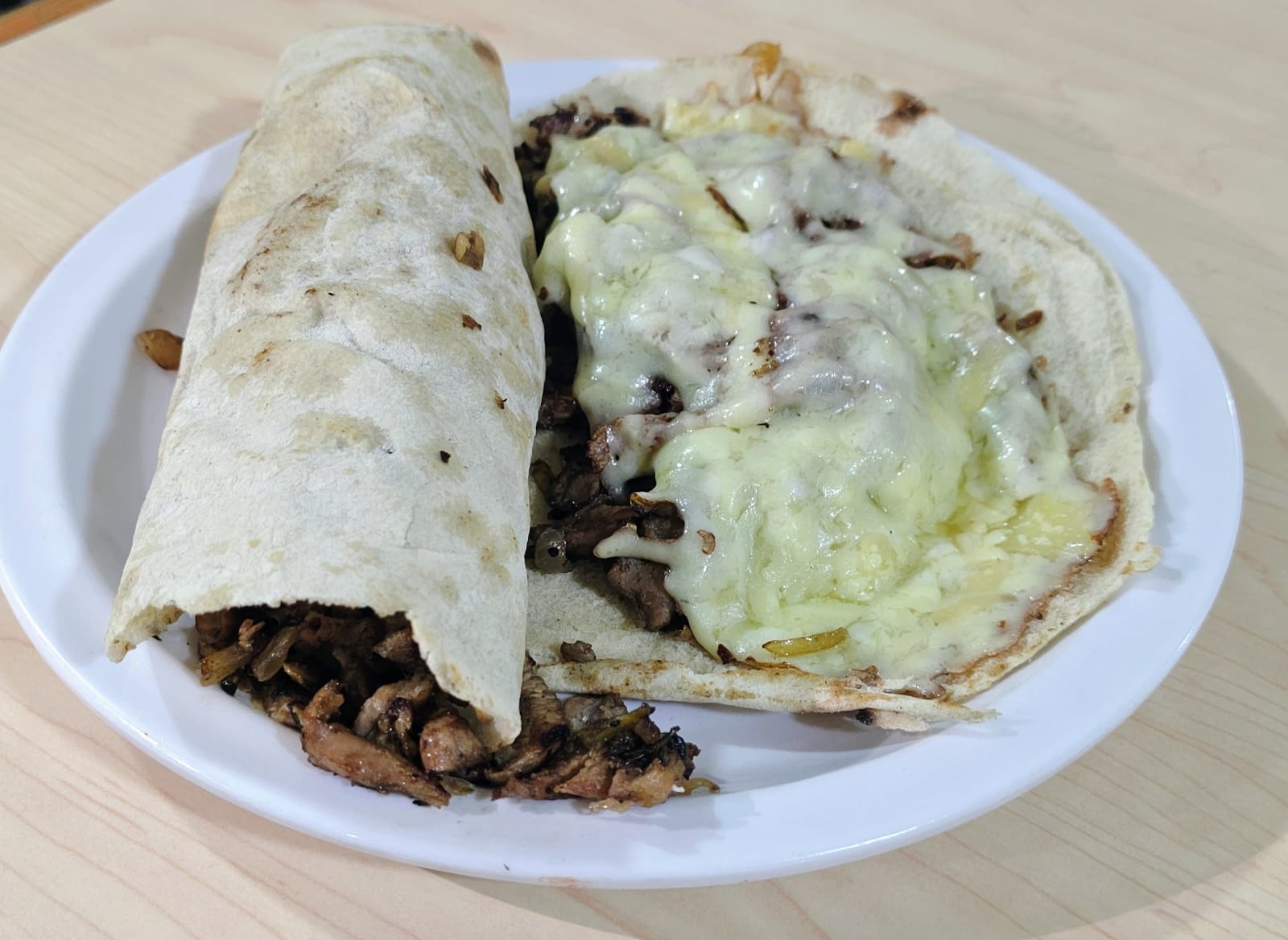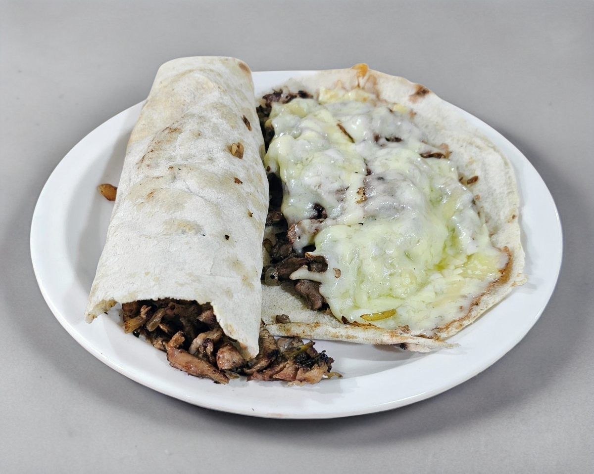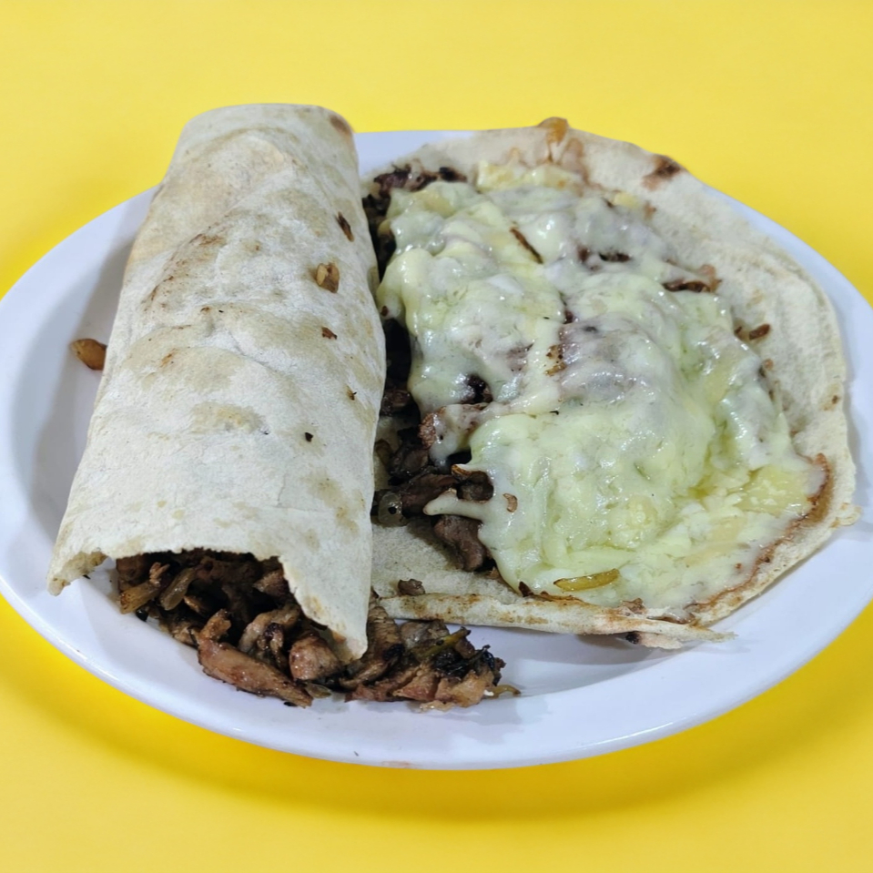 Gringa en tortilla de harina o pan árabe, con carne a elegir.