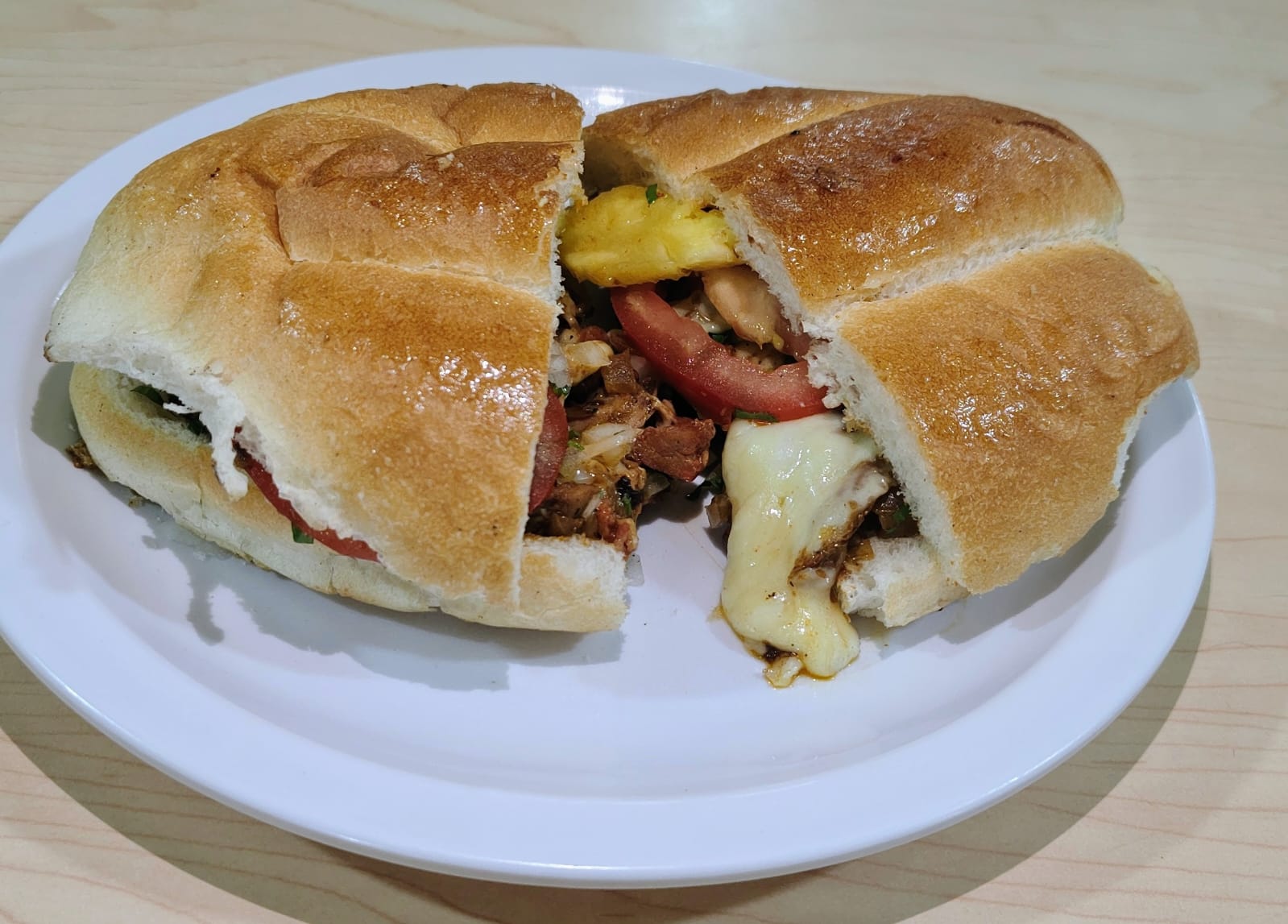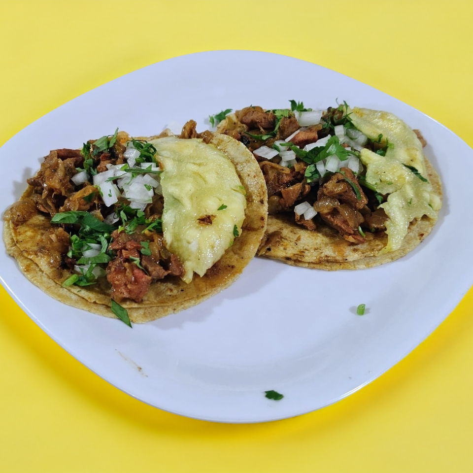 Chuleta, chorizo, árabe, adobada, jugo de limón, salsas y queso