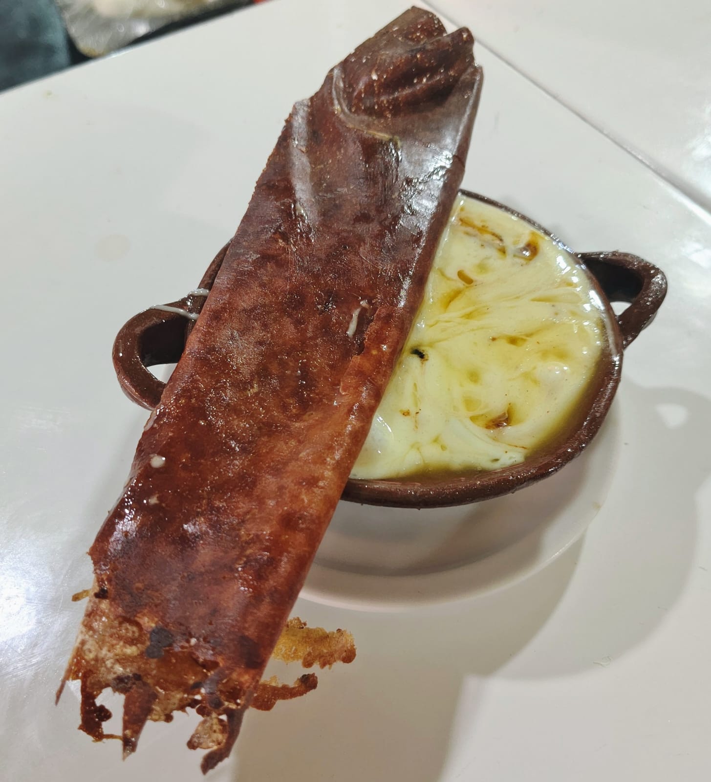 Frijoles caldosos preparados con chorizo, tocino y especias.