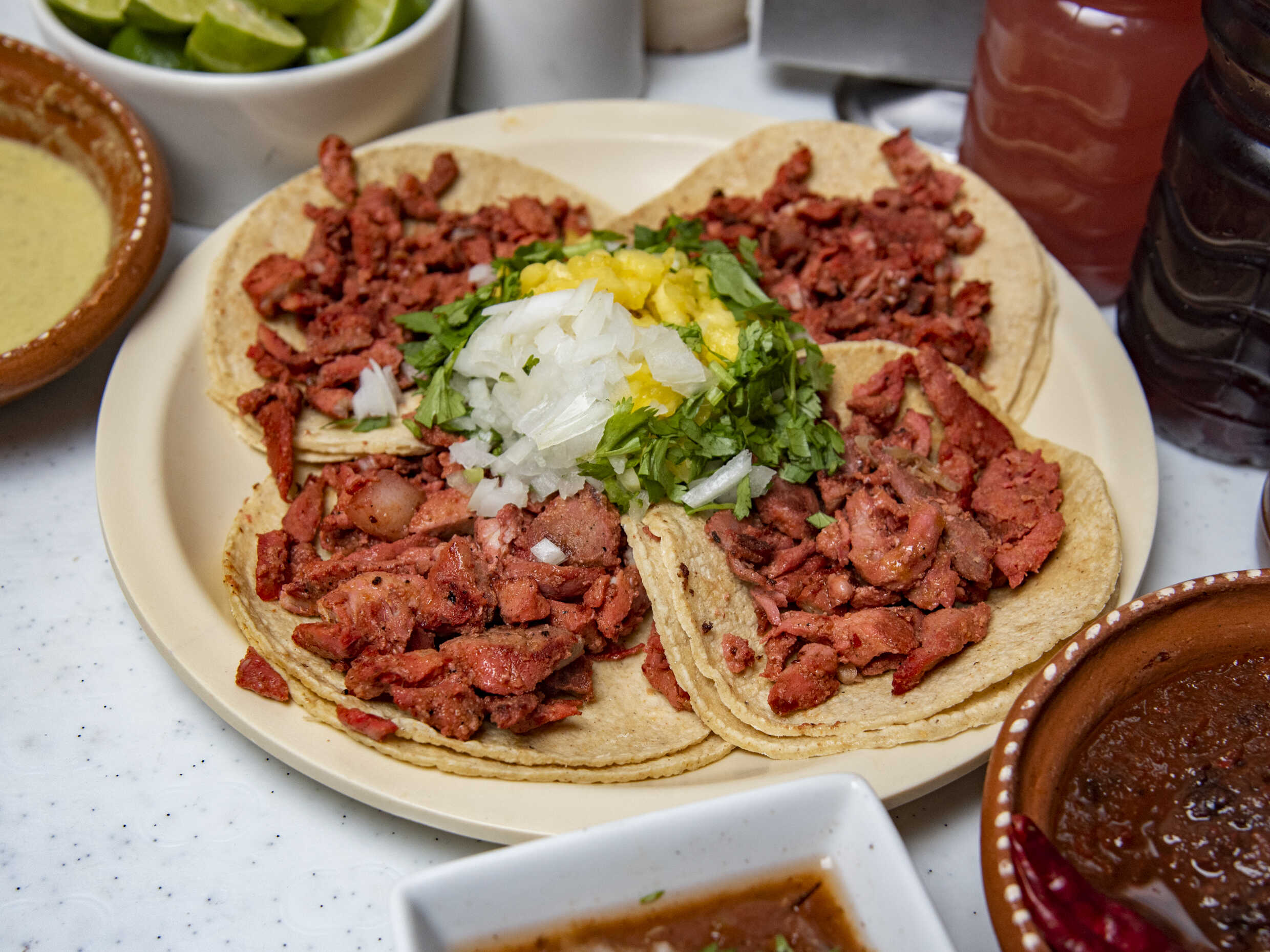 INCLUYE TORTILLAS, SALSAS, CEBOLLITAS Y VERDURA PORCION DE 150GR PASTOR 150GR BISTEC 150GR CHORIZO