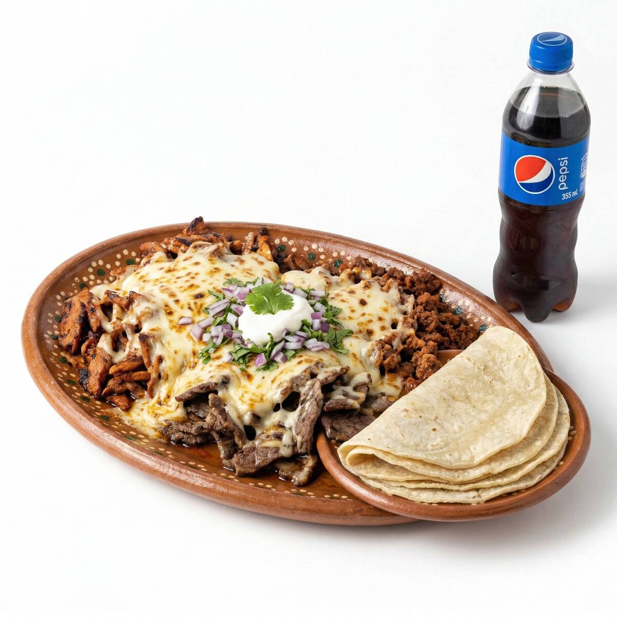 Lo más pedido y recomendado, exquisito sabor del queso doradito con la carne que mas te guste con tortilla de harina. (incluye verdura y salsas)