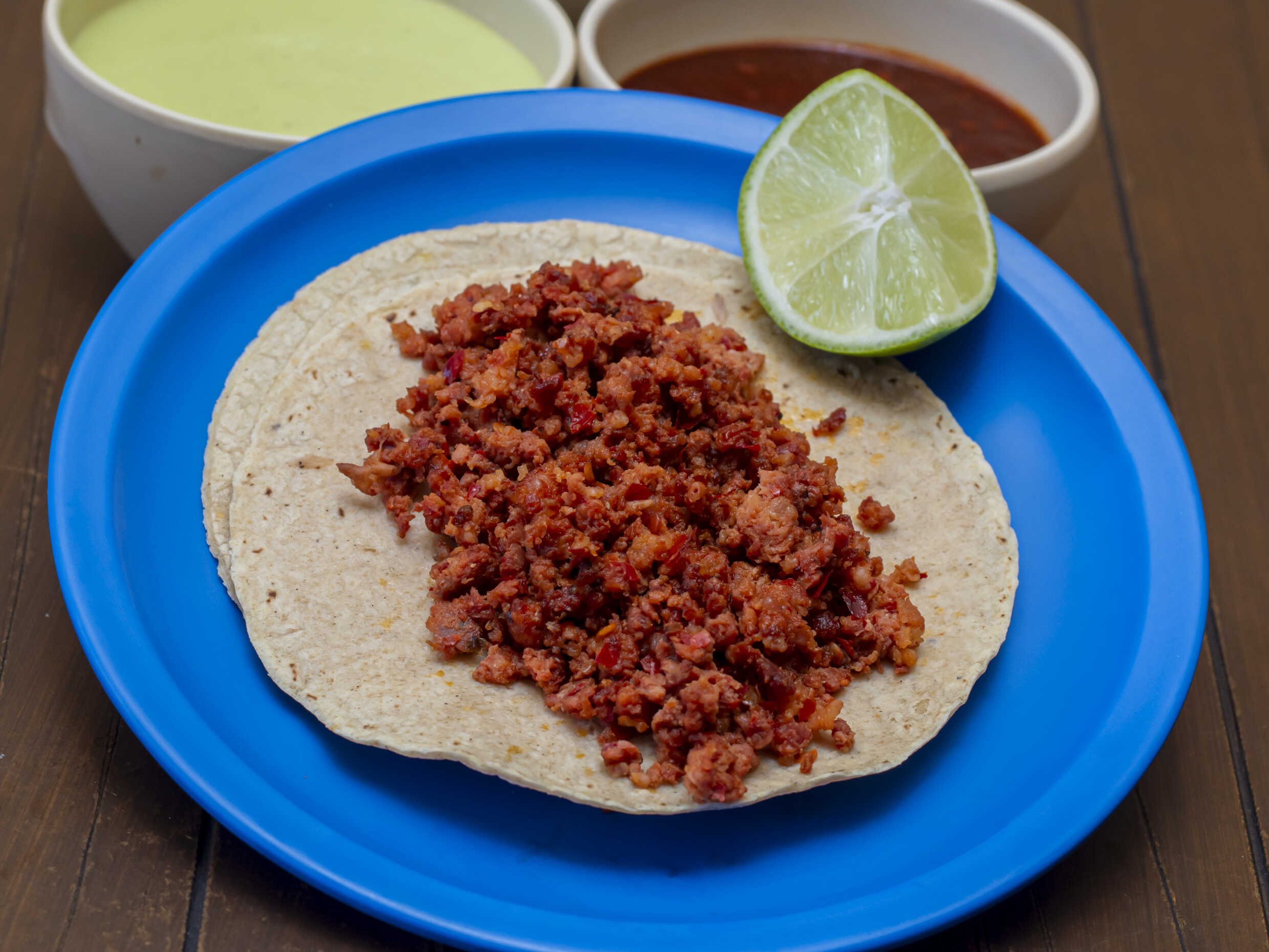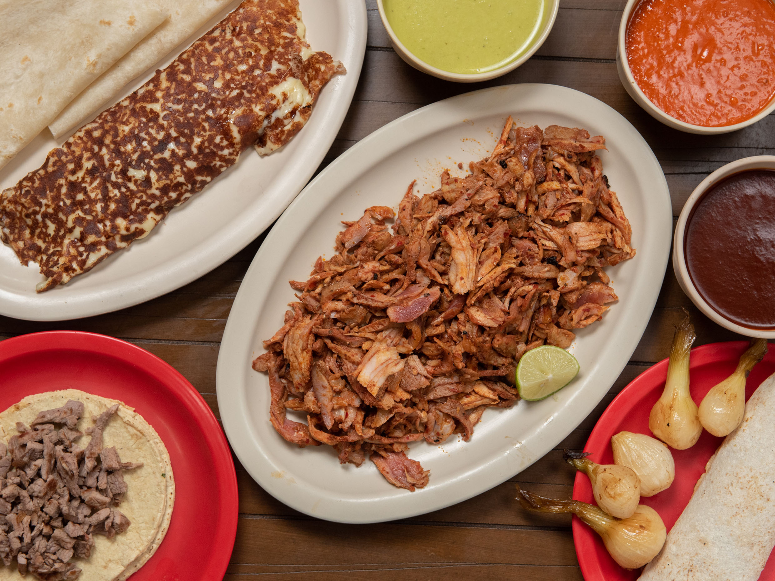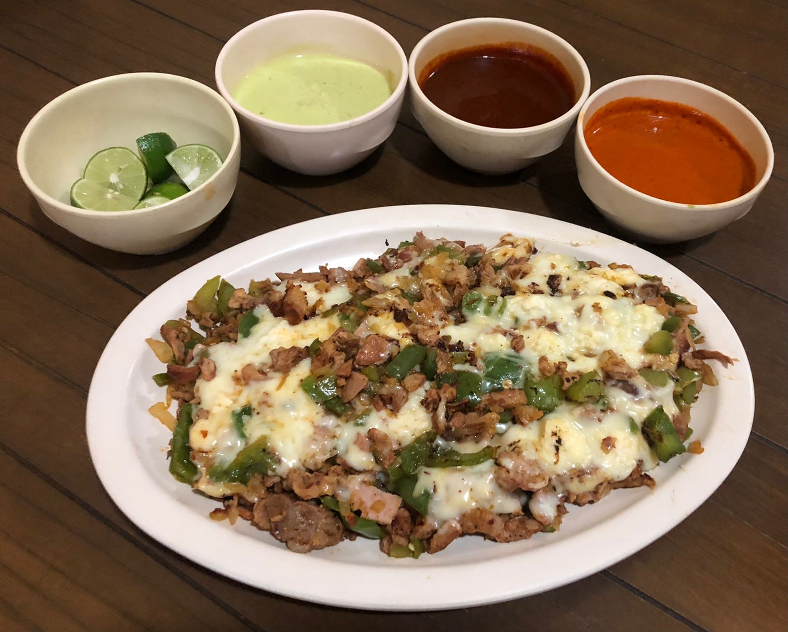 Rica costra de queso con carne a elegir con tortilla de harina o maíz.