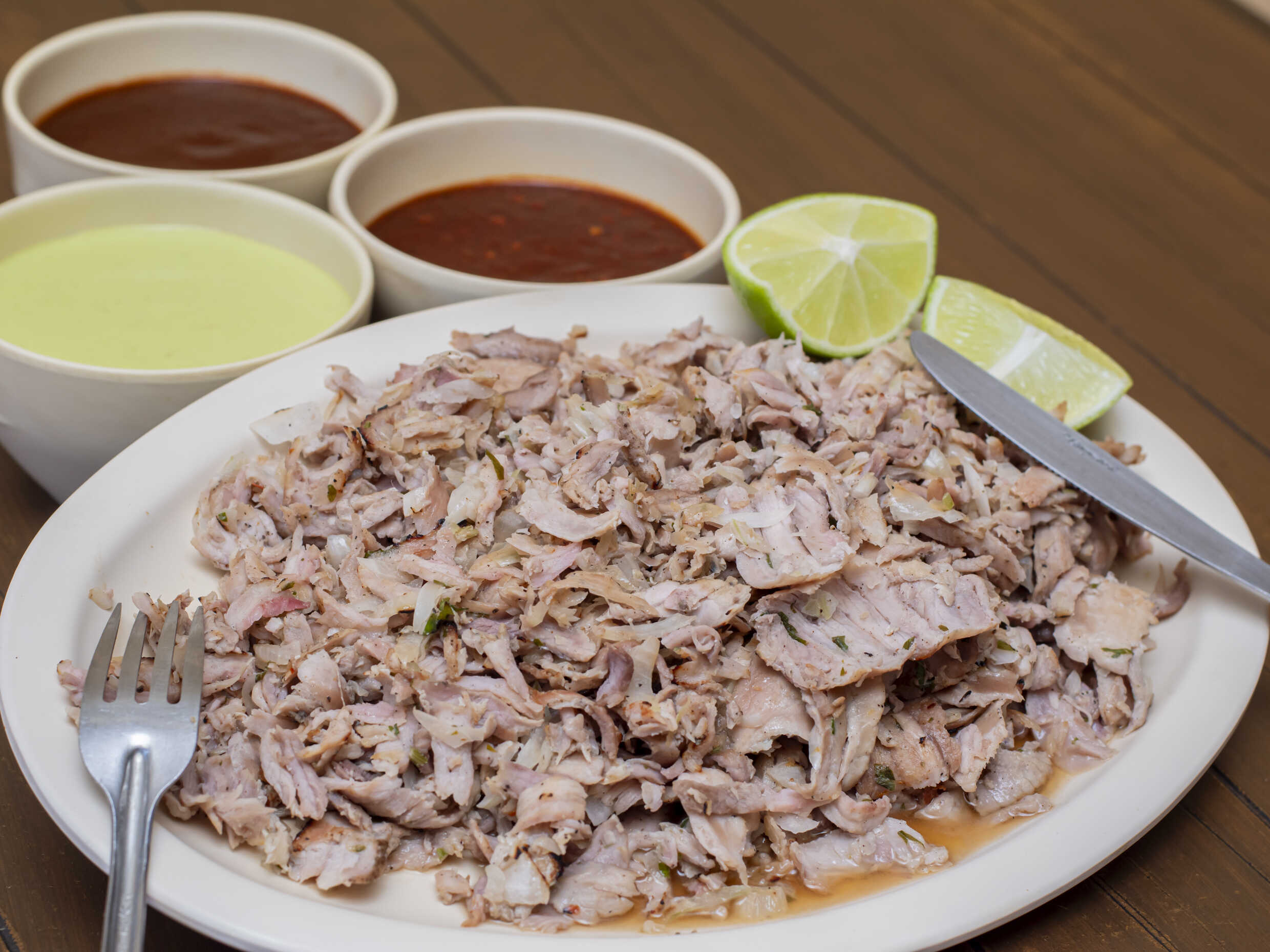 Salsa, tortillas, 4 panes árabes, limones y se pesa la carne ya cocida.