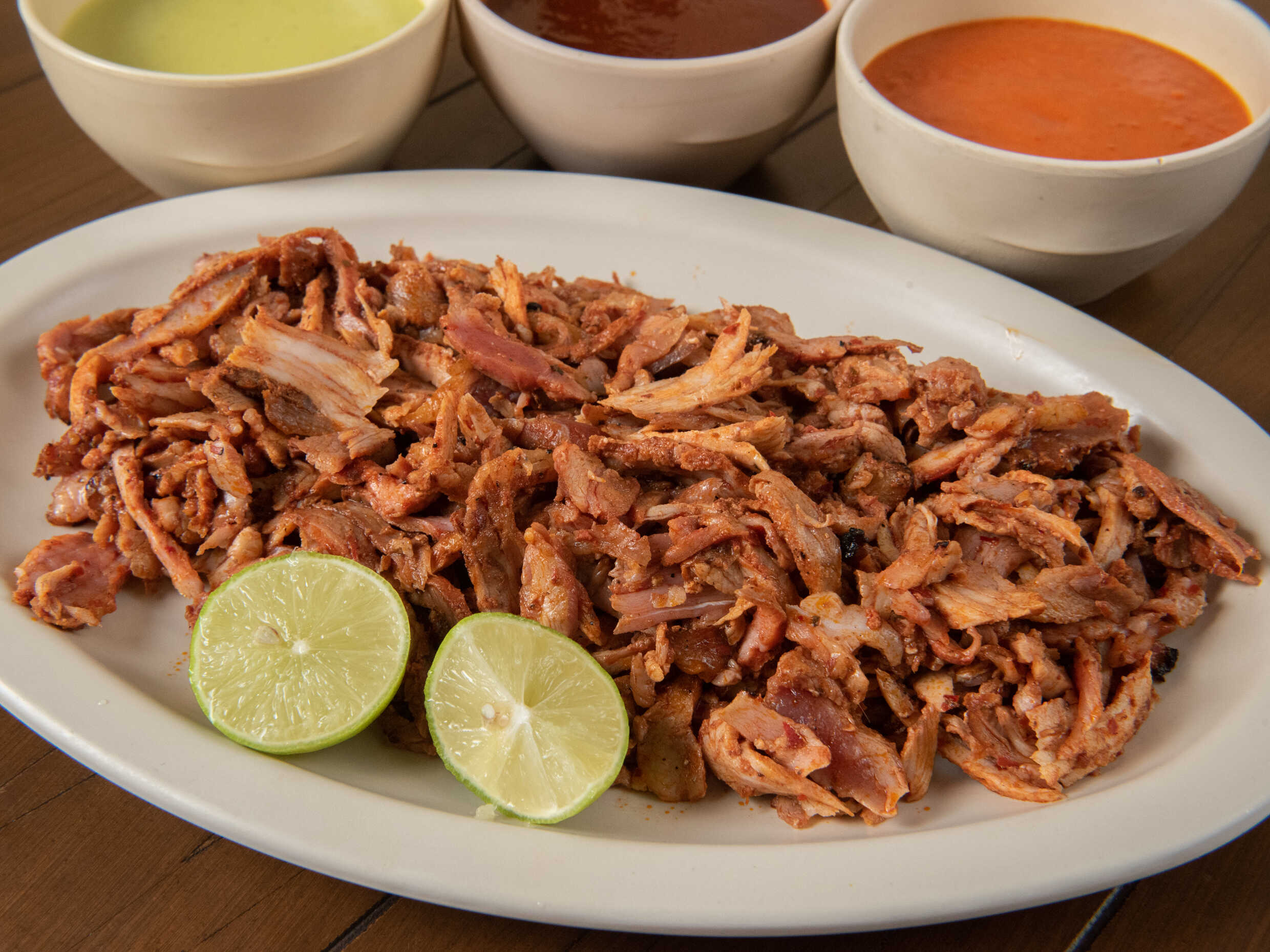 Carne al pastor sin cebolla, incluye Salsa, tortillas, limones y se pesa cocido