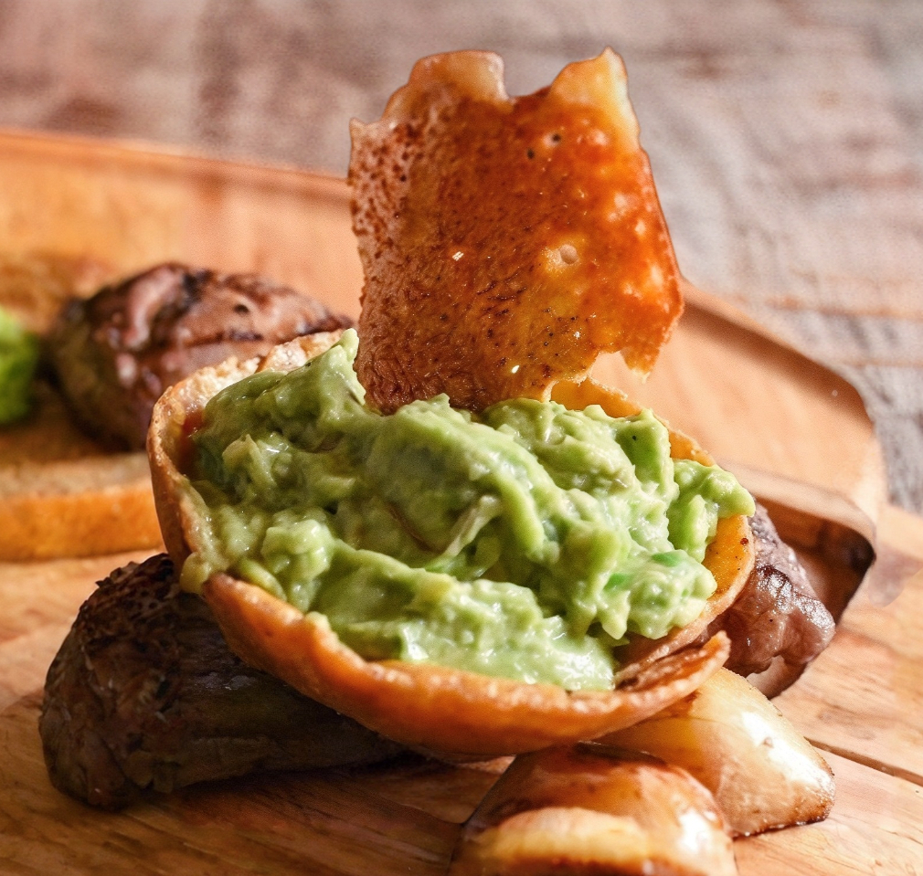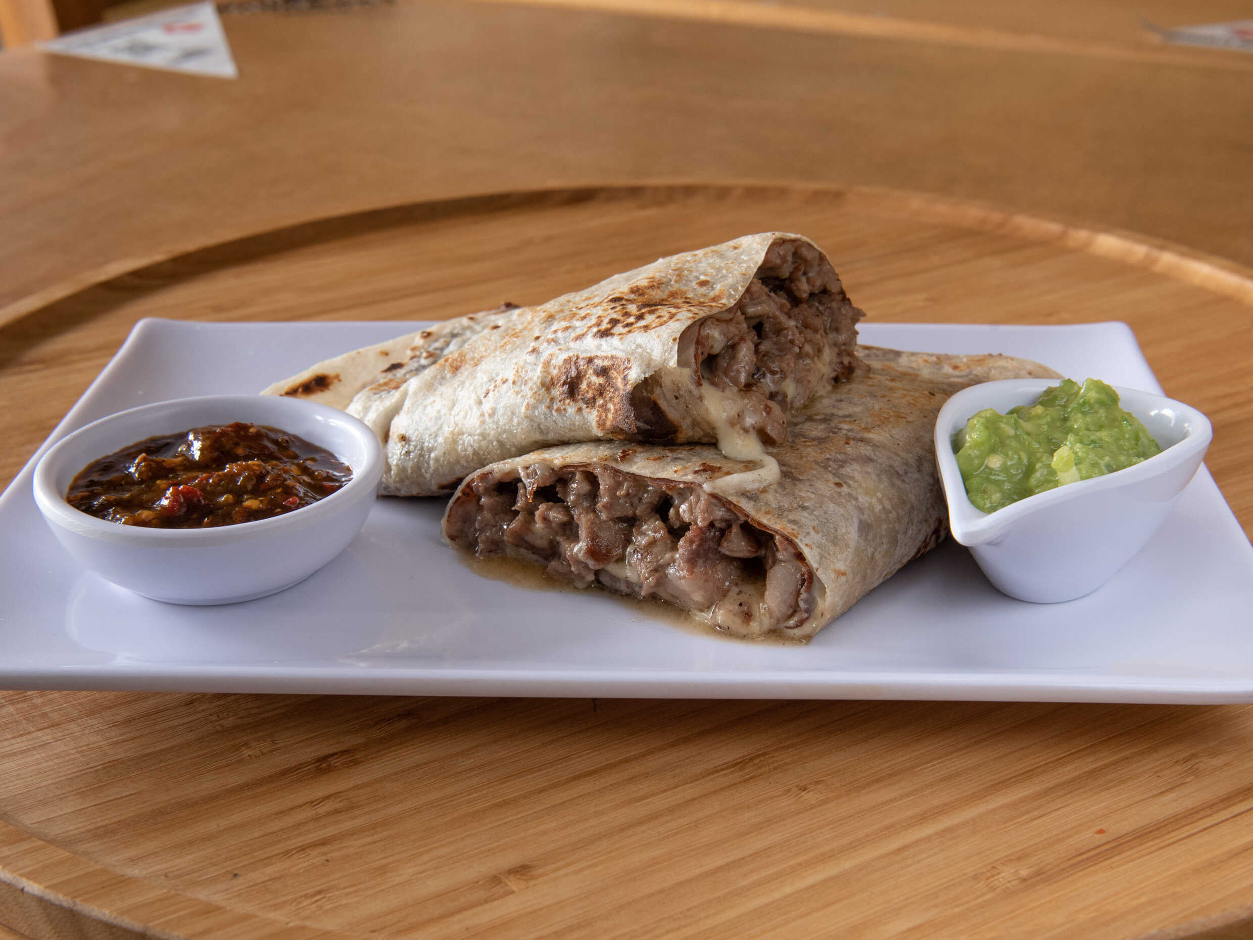 Acompañado con nopal asado y con deliciosas cebollitas, guarnición a elegir guacamole o queso fundido.