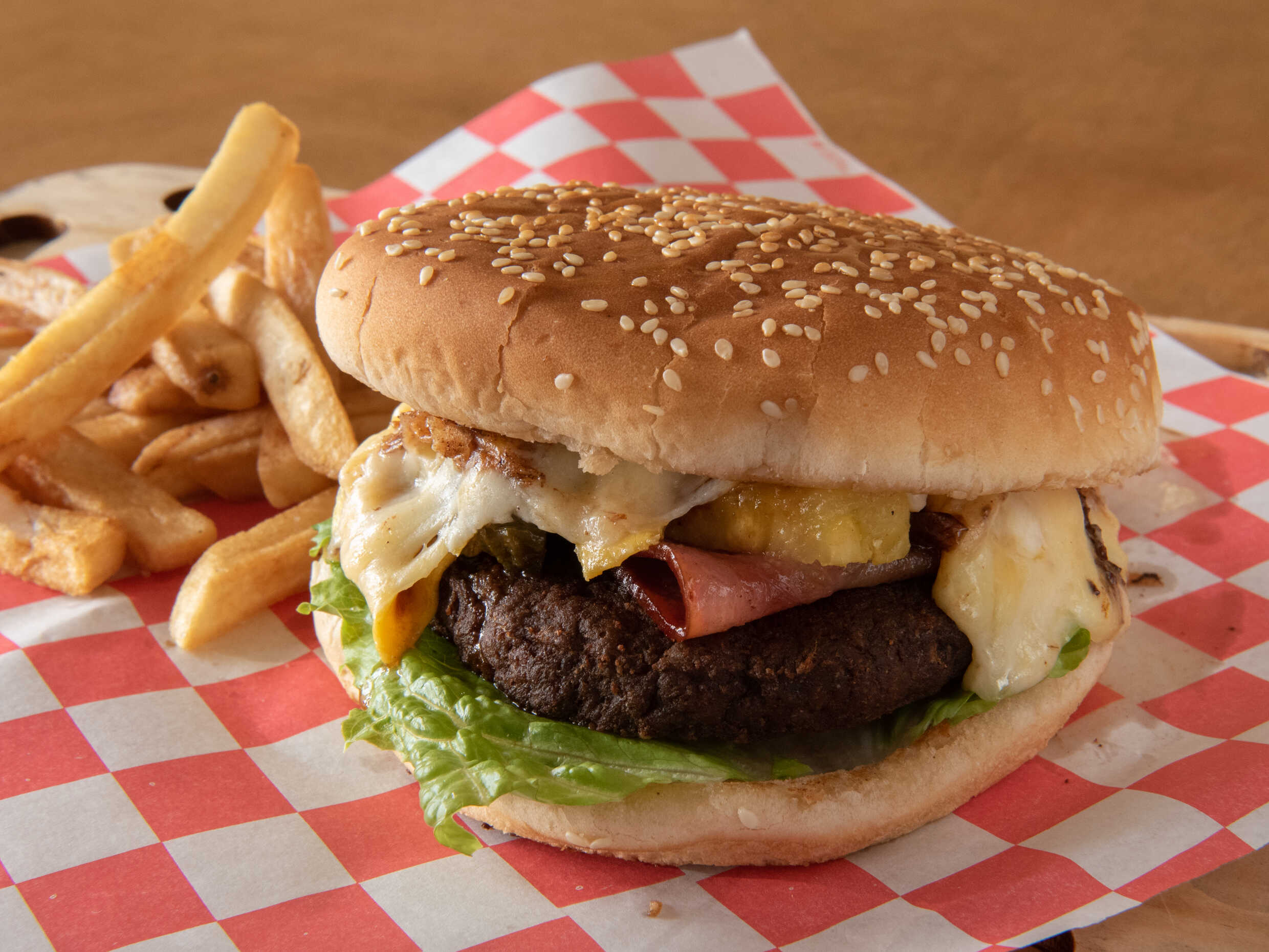 290 gramos. Sobre pan árabe, jamón, piña, queso y carne de tu elección