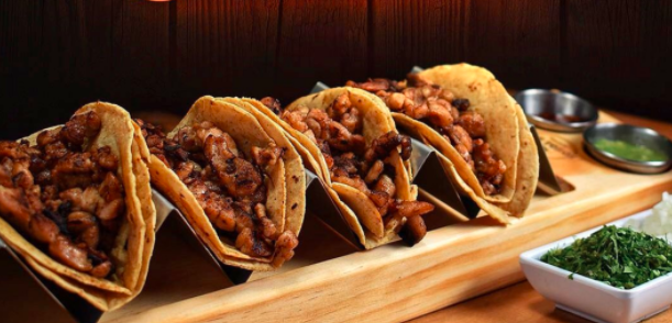 4 Taco de Pastor Tacos con carne de cerdo de 60Gr con verdura, cebolla, cilantro, salsa y limones + 1 Agua de Limón con Chía 450Ml