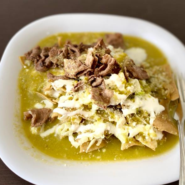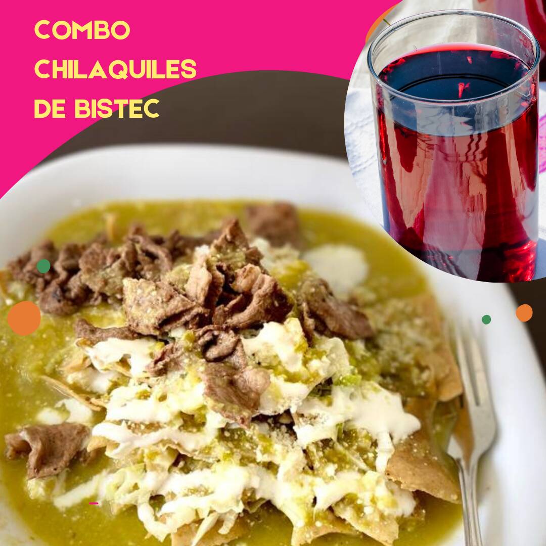 Chilaquiles de Arrachera*1 + Agua De Jamaica*1 + Coktail de Fruta "De Temporada"*1