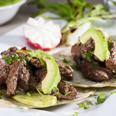 Taco de arrachera Sellada con sus jugos y llevada al asador con un golpe de calor que resalta su sabor
