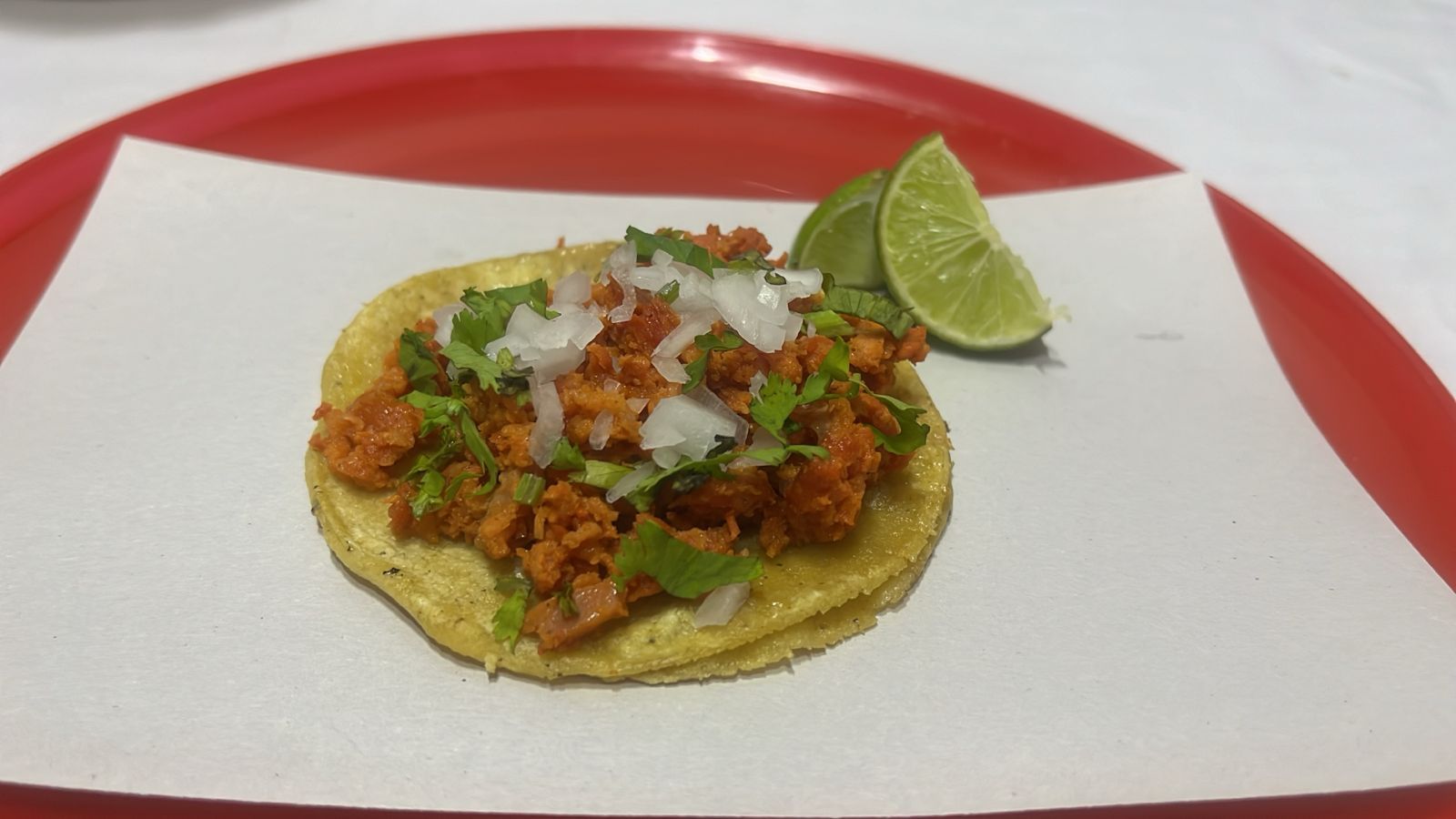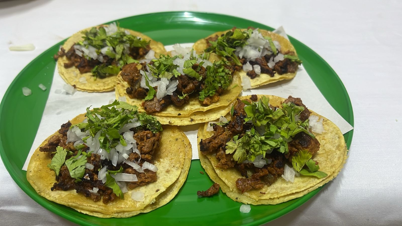 Son 5 deliciosos taquitos de cecina adobada, vienen en tortilla de maiz taquera del #10