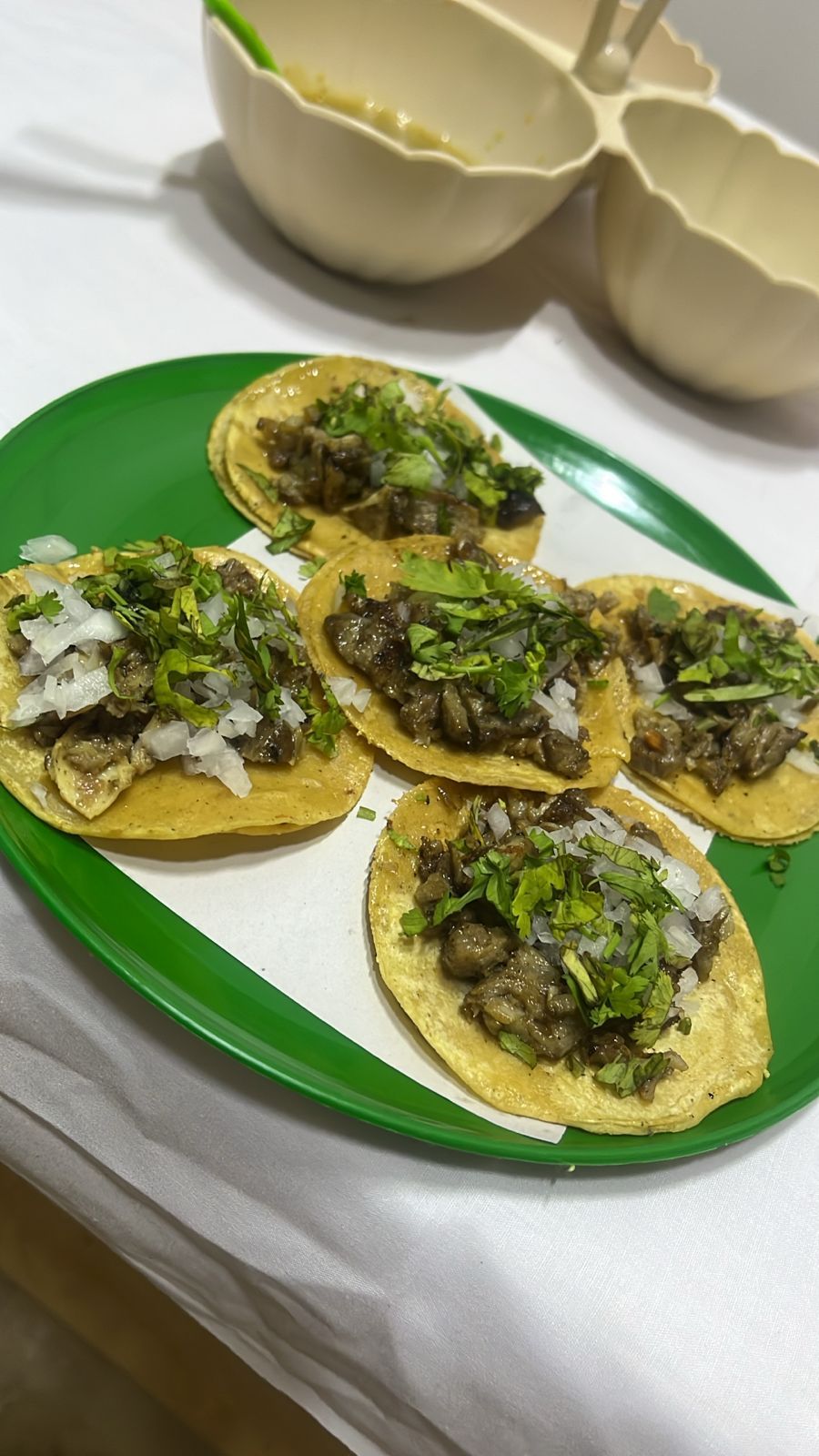 Son 5 deliciosos taquitos de arrachera, vienen en tortilla de maiz taquera del #10