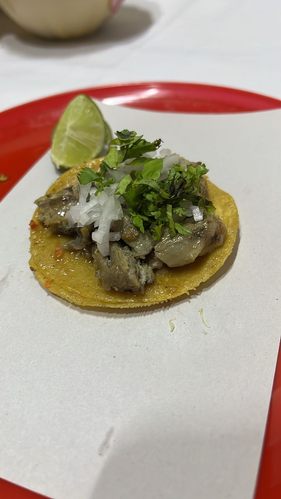 Taquito de cecina adobada en tortilla taquera de maiz del #10
