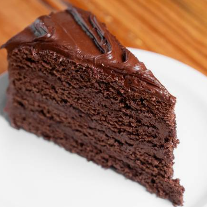 Rebanada generosa de pastel de chocolate.
