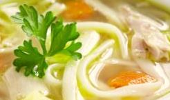 Delicioso pollo, zanahoria, chícharo, apio y pasta de caracol.