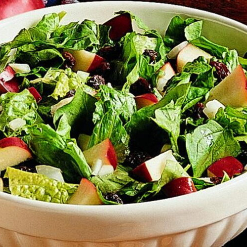 Mix de lechuga y espinaca, manzana, fresas, bolitas de queso philadelphia y arandanos