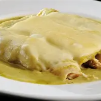 4 flautas rellenas de pollo bañadas en salsa de su preferencia, (Roja o Verde), acompañado de Frijoles, queso y crema)