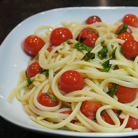 Jitomate Cherry, crema, queso parmesano y albahaca