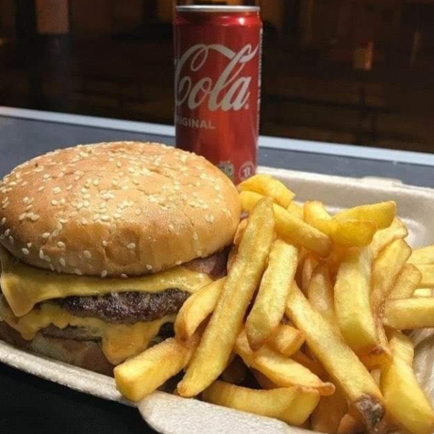 Hamburguesa sencilla, 150gr de papas a la francesa y un refresco de 355ml