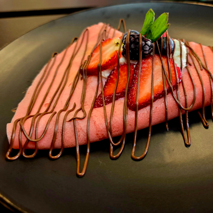 Crepa Rosa rellena de Nutella con fresas o Plátano