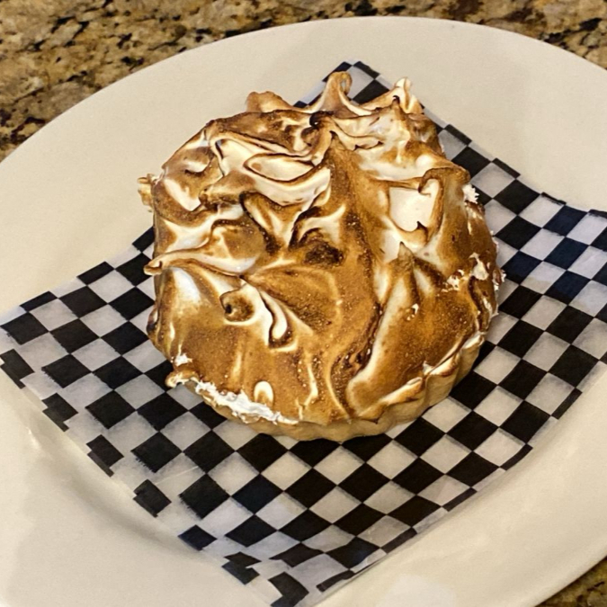 Tarta con merengue de limón flameado