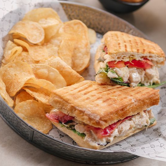Pechuga de pollo jugosa a la plancha, en pan chapata crujiente, con queso crema, vegetales frescos y arándanos.