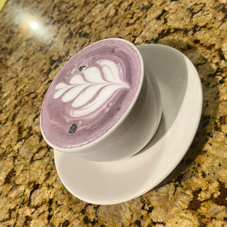 Leche perfectamente cremada con nuestro clásico Taro en polvo.