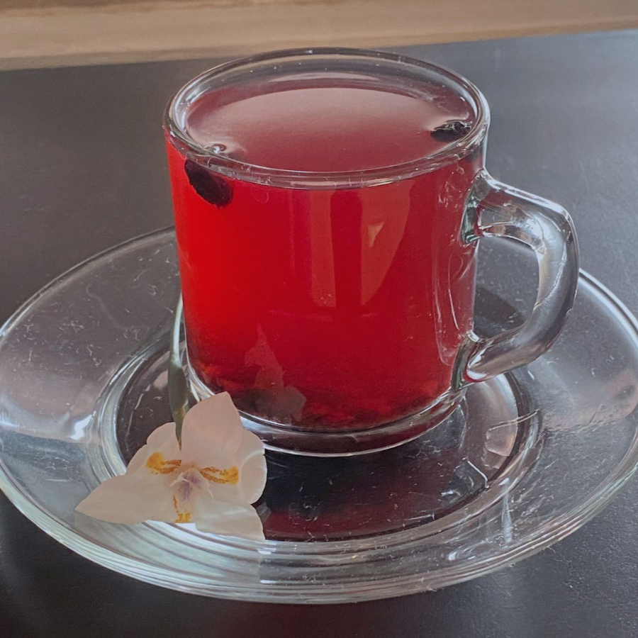 Deliciosa tisana con una mezcla de arándanos, fresa, manzana y petálos de rosa.