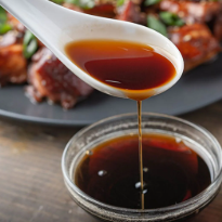 Pechuga de pollo asada al grill, glaseada con salsa teriyaki y ajonjolí.