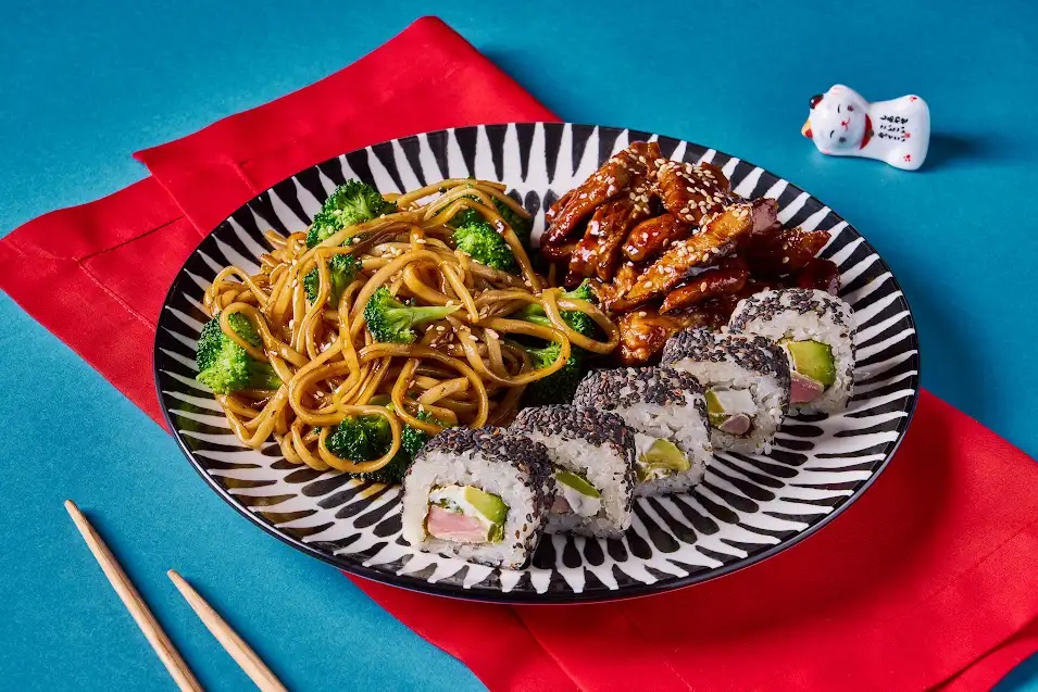 Arma tu combo con 3 favoritos y un complemento: arroz, noodles o entrada.