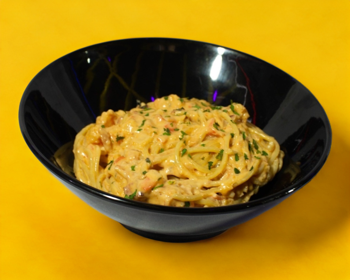 Deliciosa pasta con salsa cremosa acompañado con tocino, jamón y salchicha italiana con un toque de queso cotija.