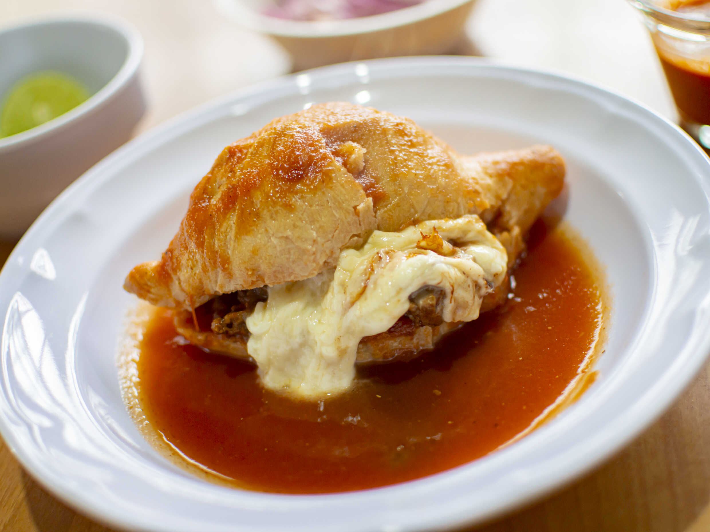 1 pieza torta un bolillito relleno de carnita con queso para una persona
