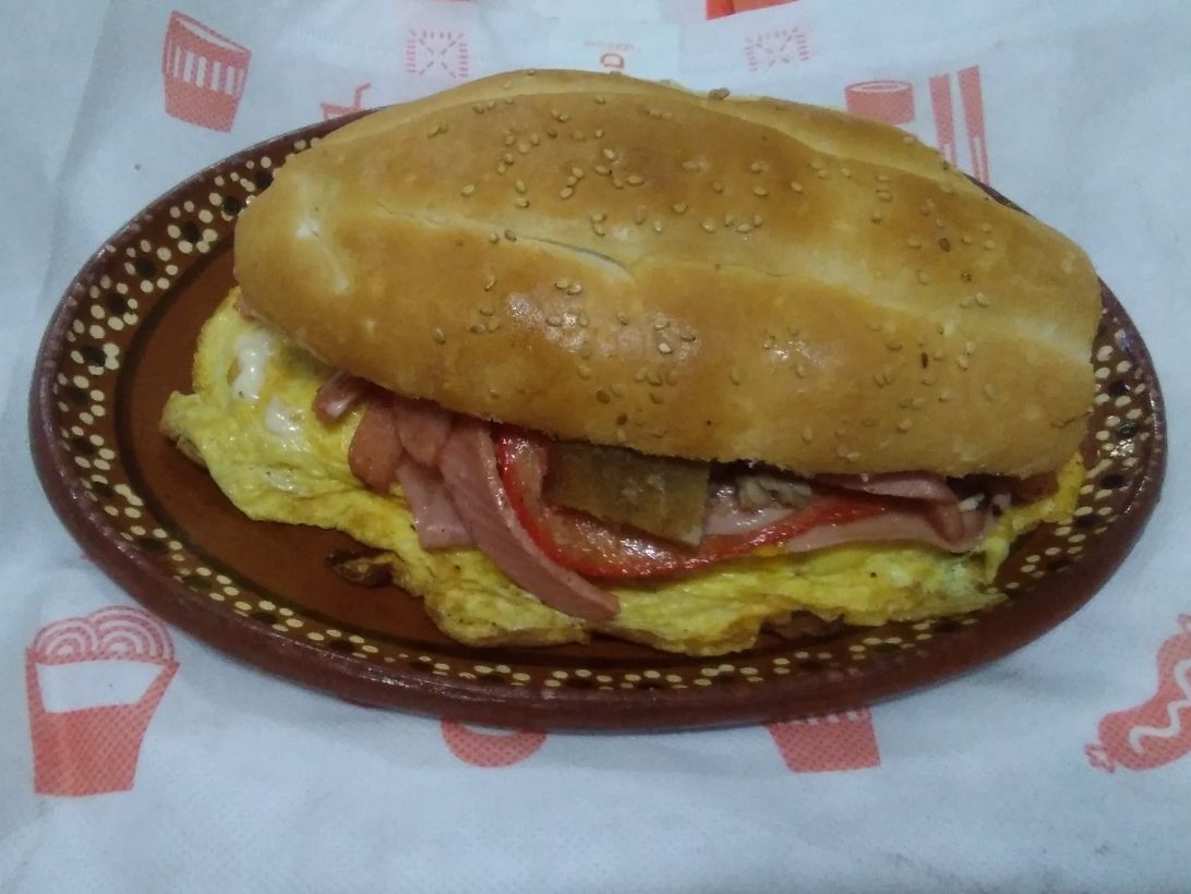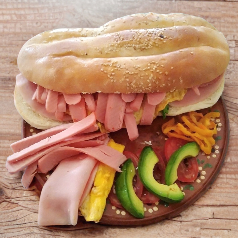 Pierna, jamón , quesillo, aguacate, jitomate, picante y mayonesa