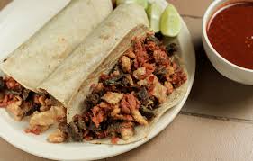 Tortilla de harina, frijol, bistek, chorizo, jitomate, aguacate, lechuga