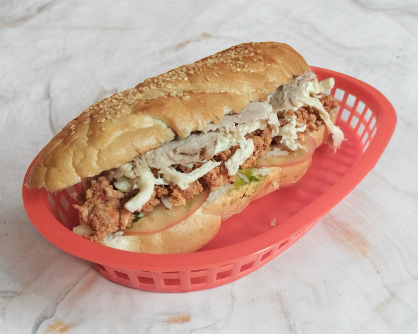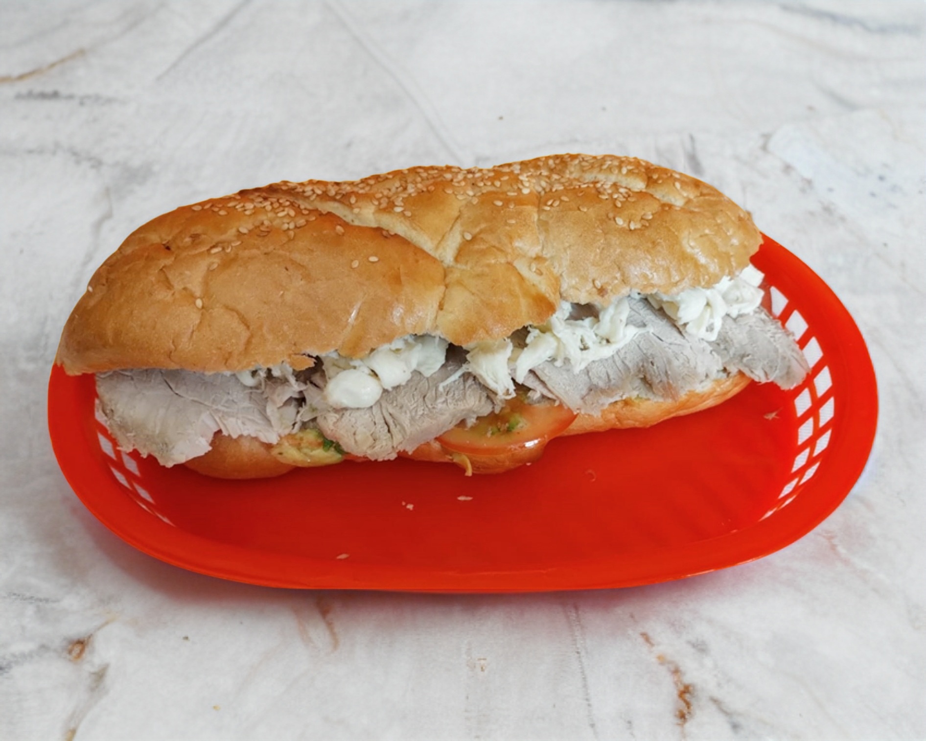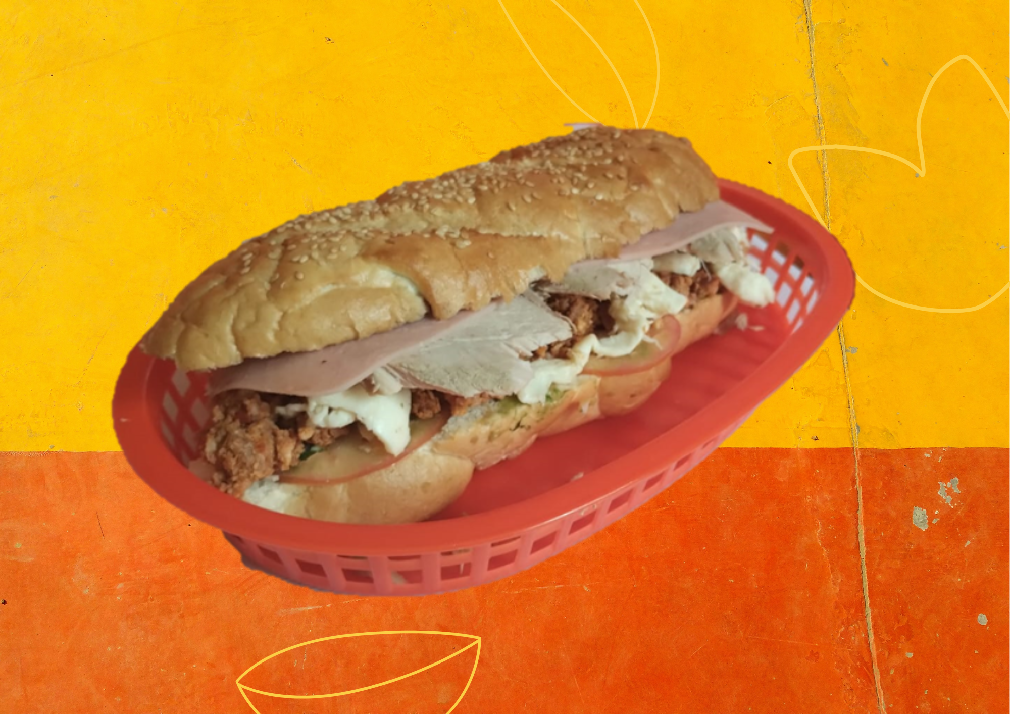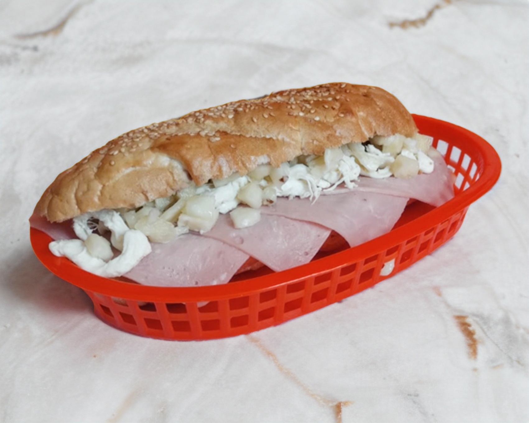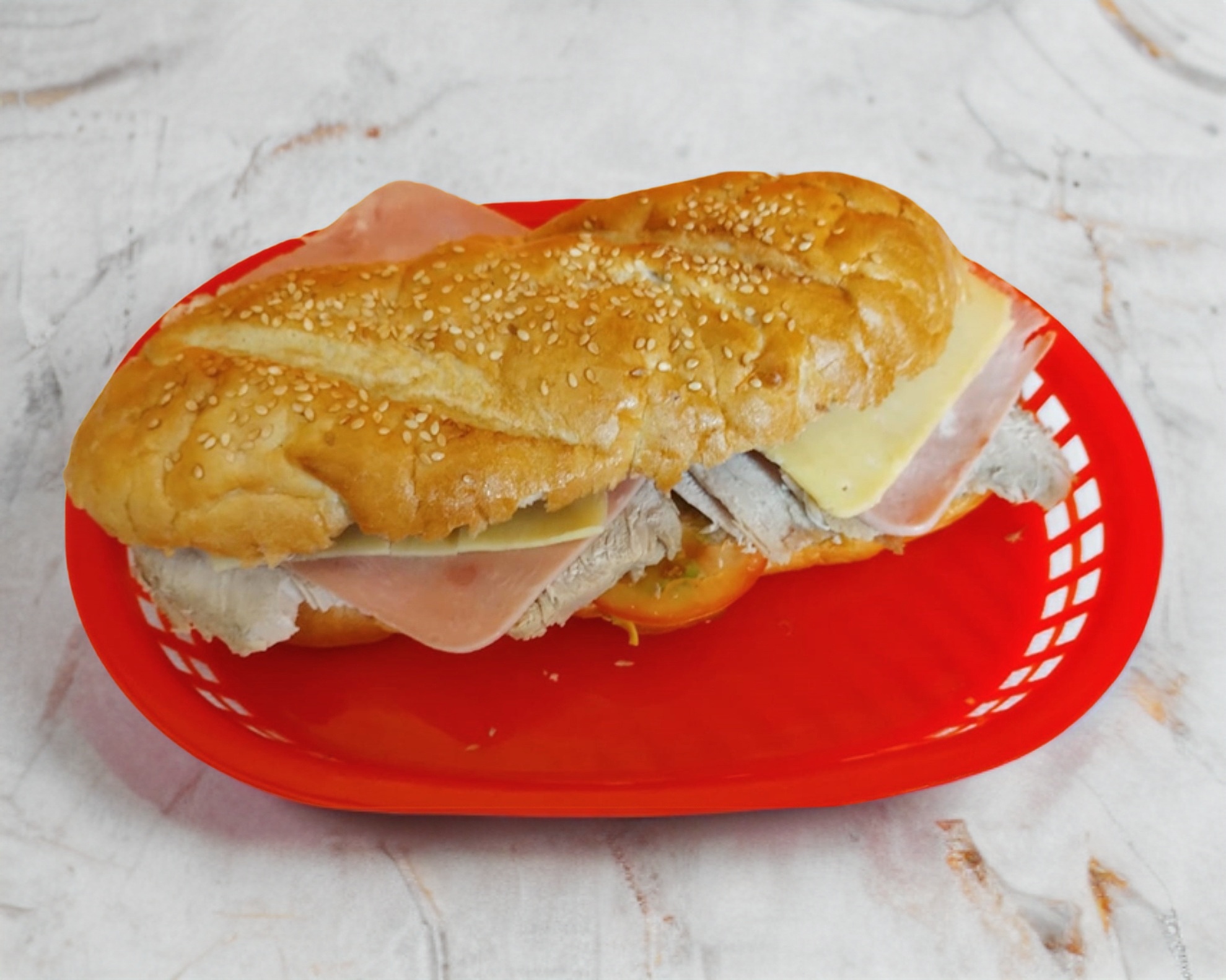 Pierna horneada, jamón, queso paneIa y queso amarillo.