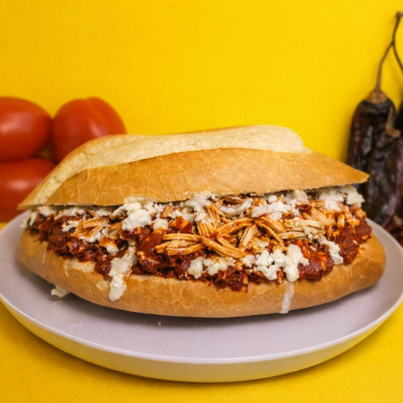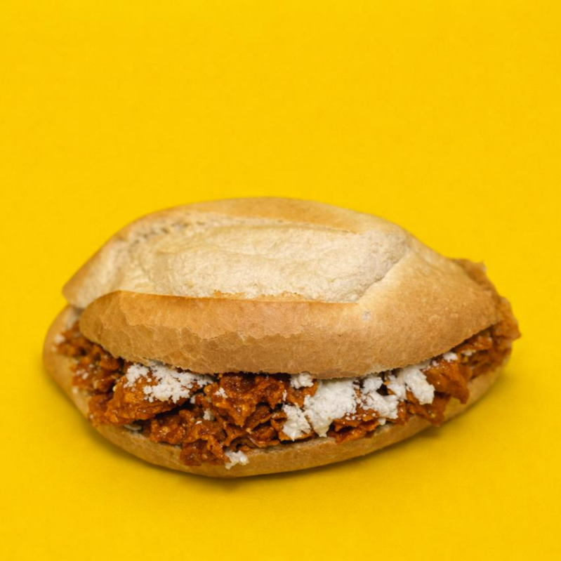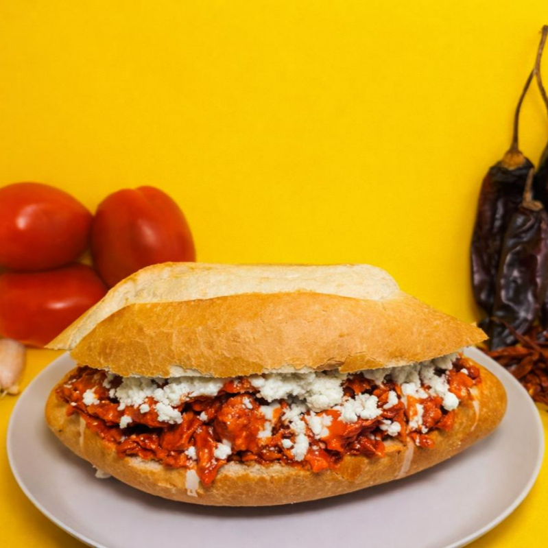 Torta de Chilaquiles Rojos con Pollo Deshebrado