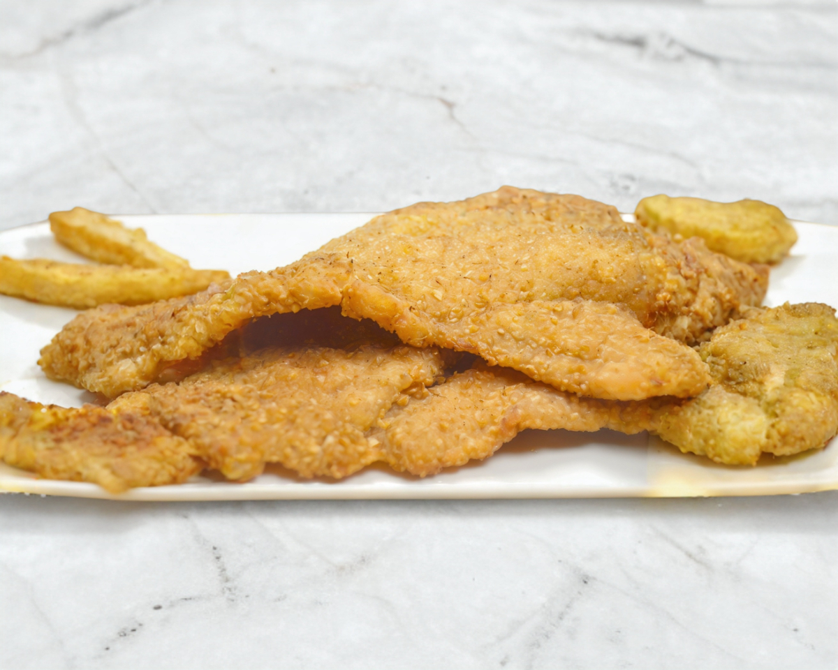 Milanesa, 1/2 salchicha, jamón y queso oaxaca gratinado 15 GR.