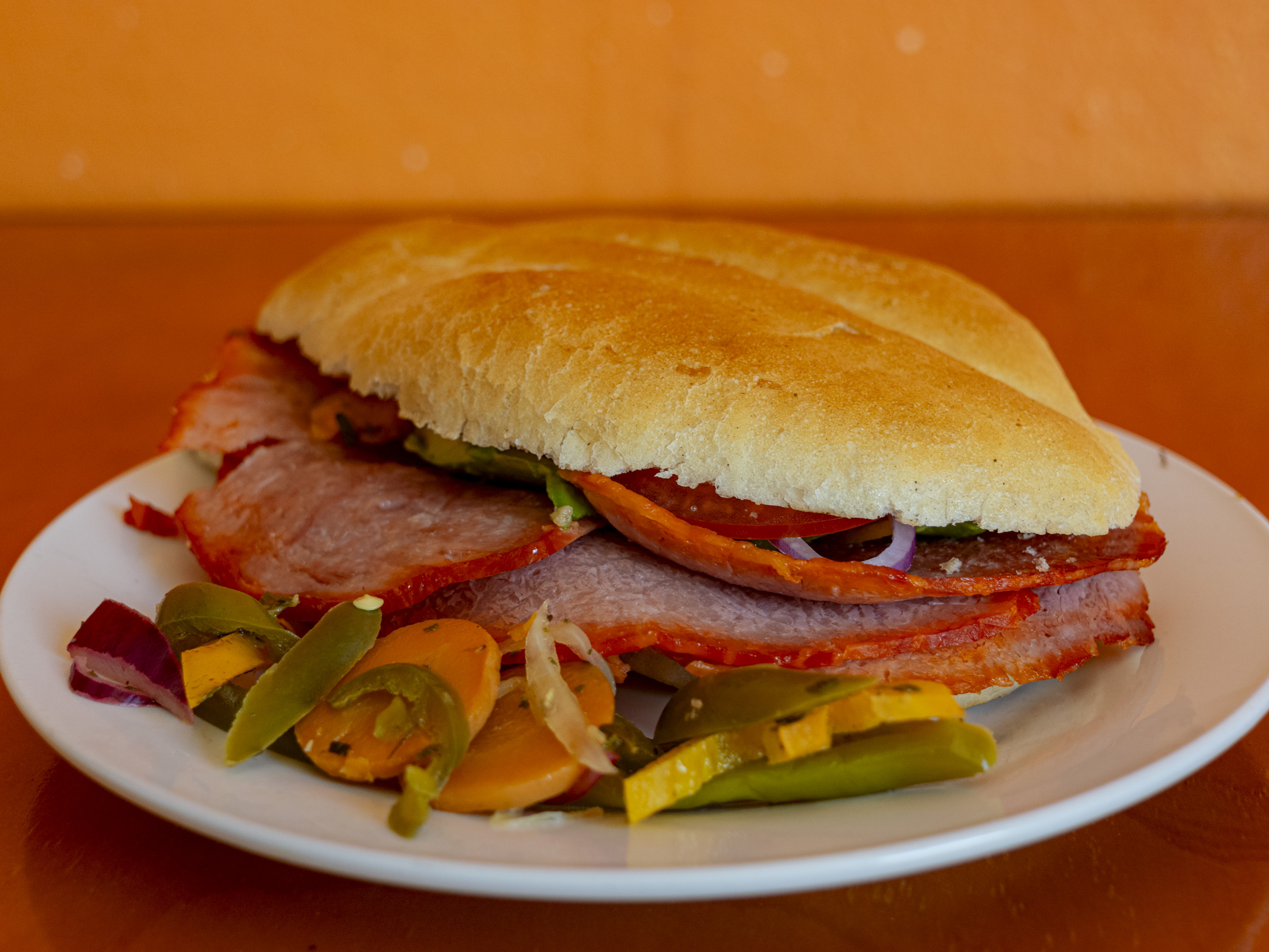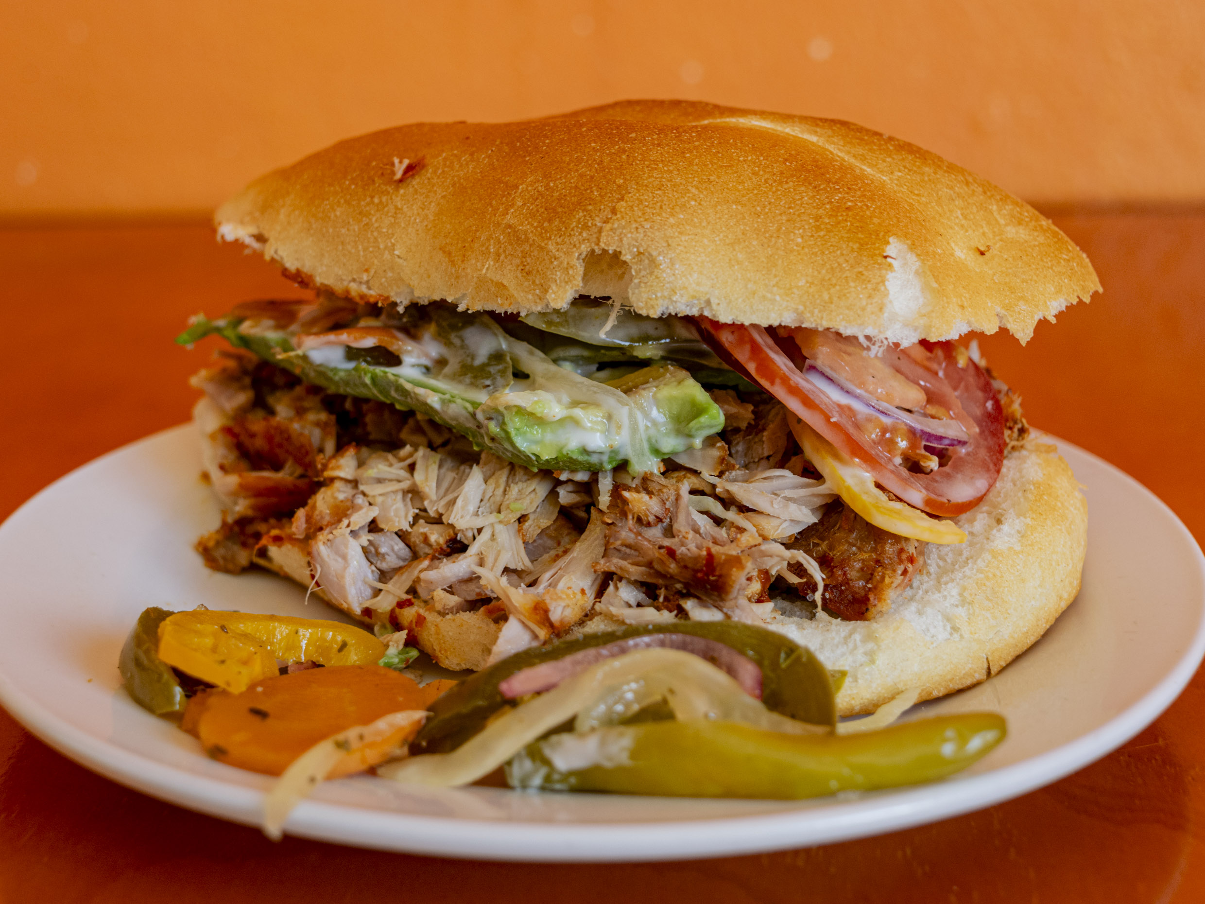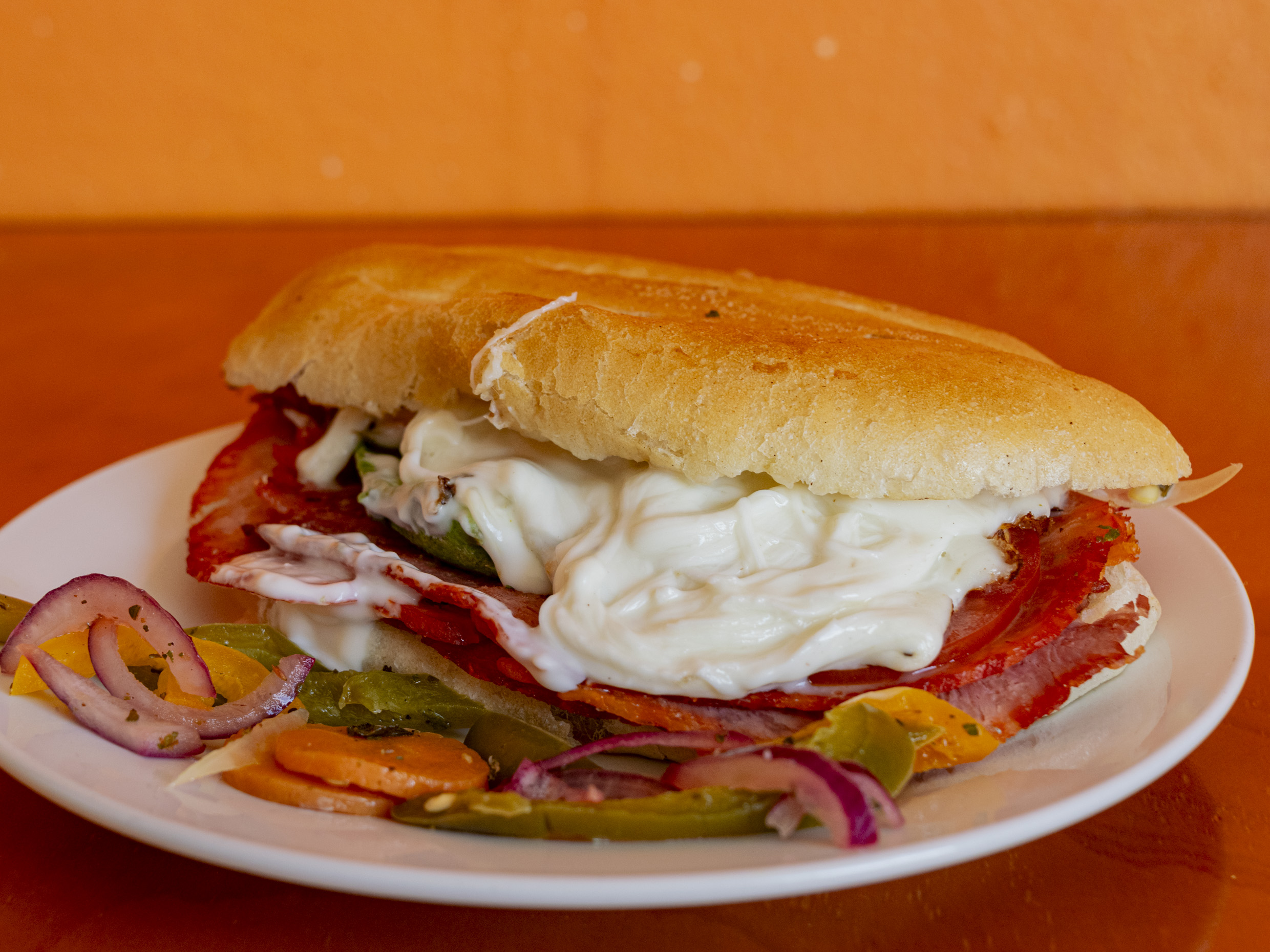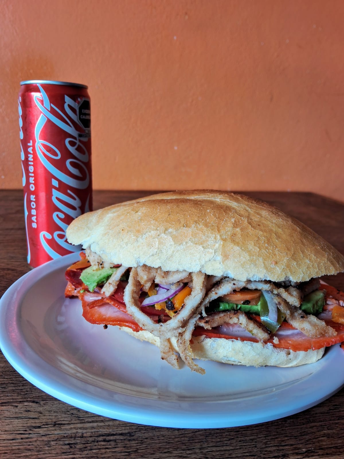 jamon de pavo, queso oaxaca o doble crema, aguacate, jitomate, cebolla, rajas o manzanos, crema y frijoles