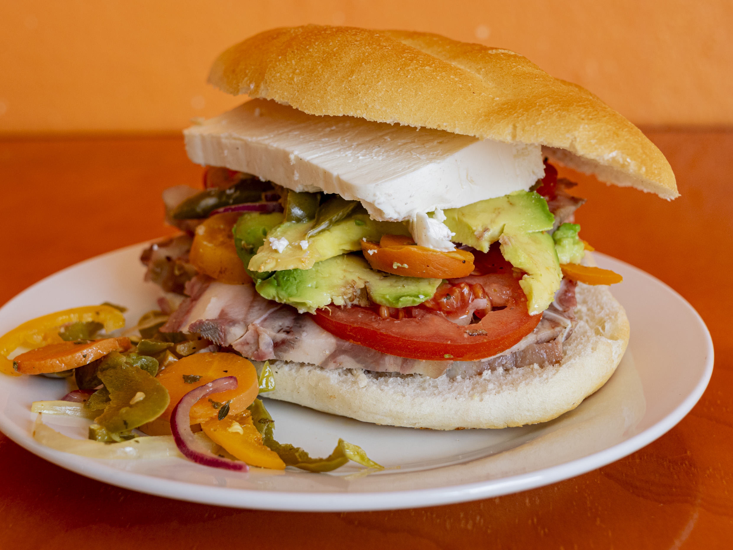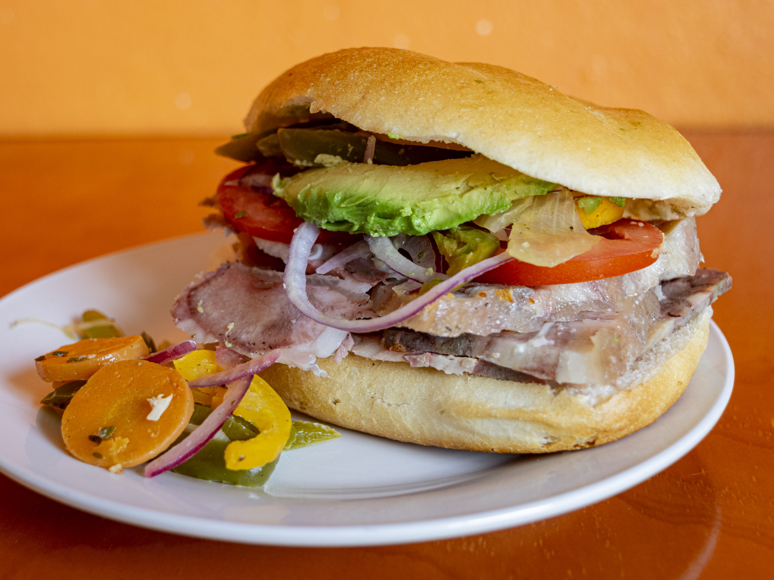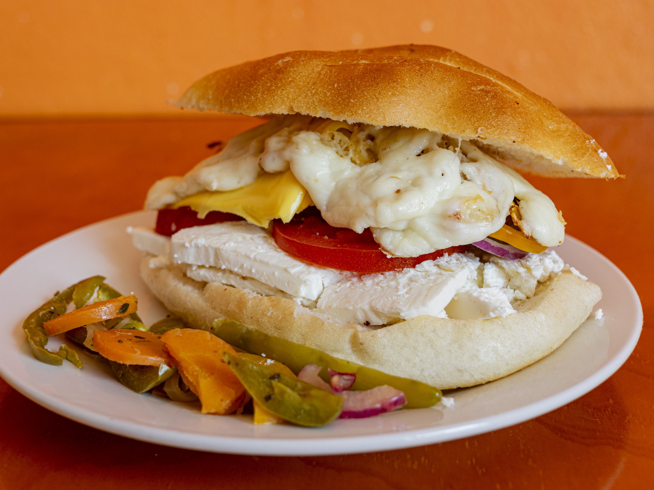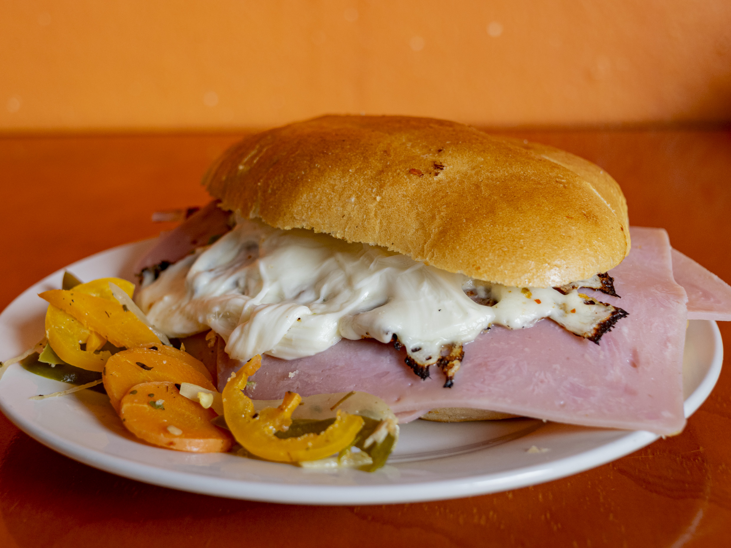 jamon de pavo, queso oaxaca o doble crema, aguacate, jitomate, cebolla, rajas o manzanos, crema y frijoles