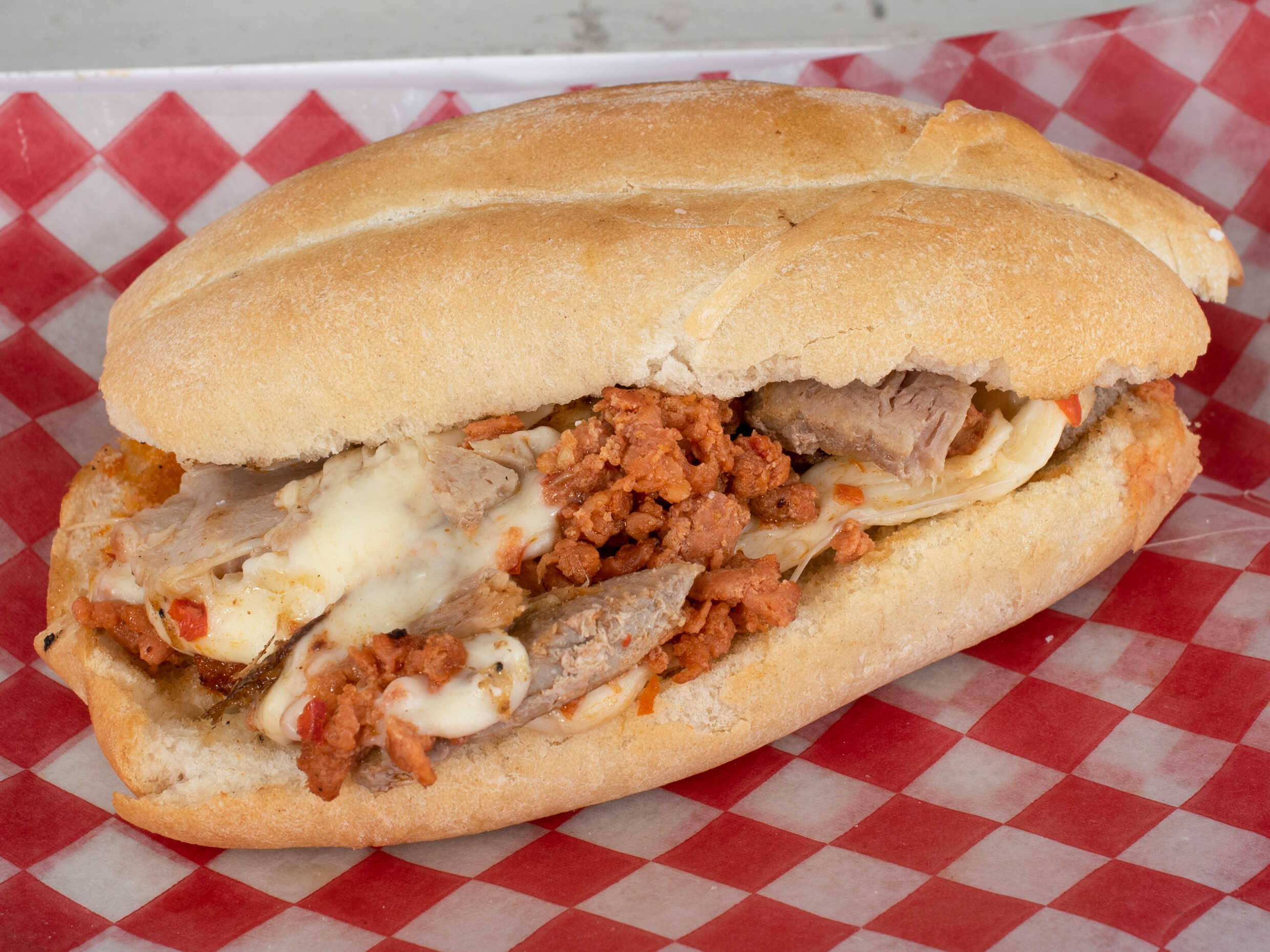 Pierna, chorizo y queso oaxaca.