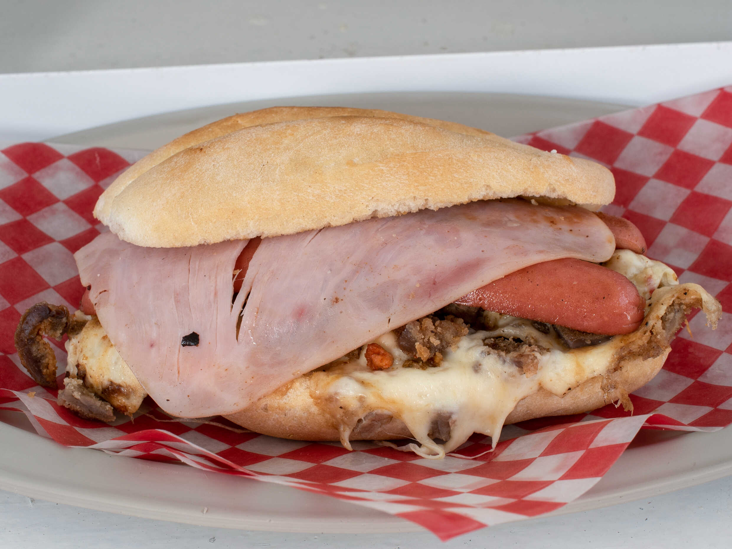Milanesa, salchicha, jamón y queso oaxaca.