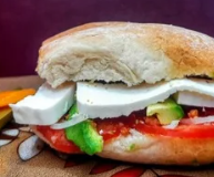 Torta con queso panela, queso amarillo y quesillo aguacate, jitomate, cebolla, rajas, chipotle, queso panela, queso amarillo y quesillo.