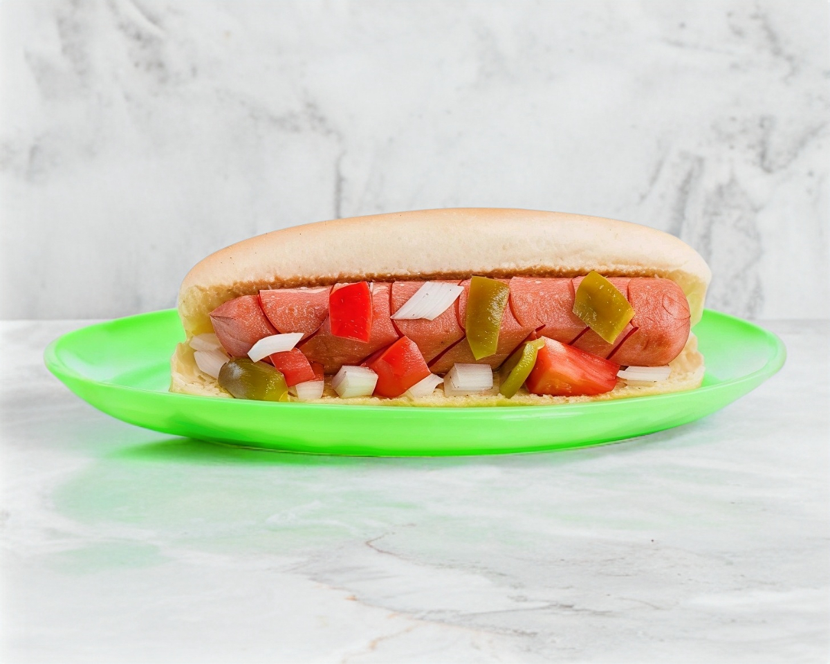 Salchicha de pavo, media noche, verdura y Aderezos