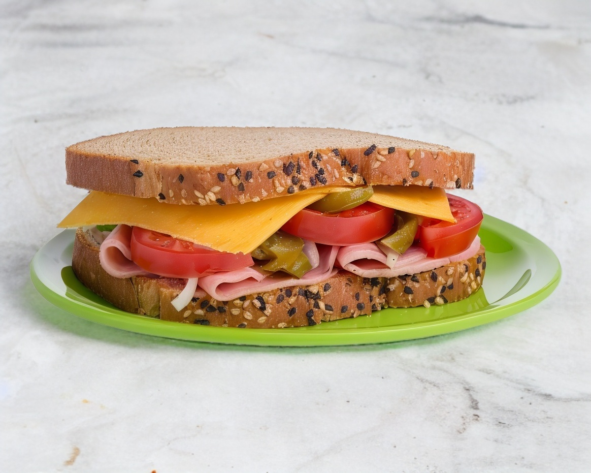 Jamón, Q. Amarillo, Q. Oaxaca, Pan integral, Verdura y aderezos