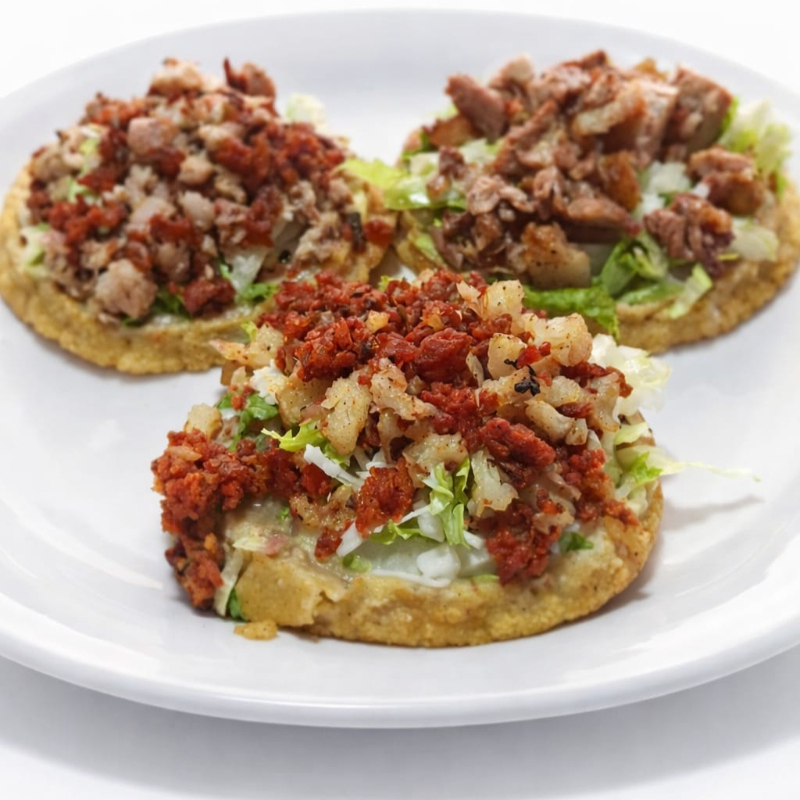 3 SOPES (BISTEC, COMBINADO, PAPAS CON CHORIZO)