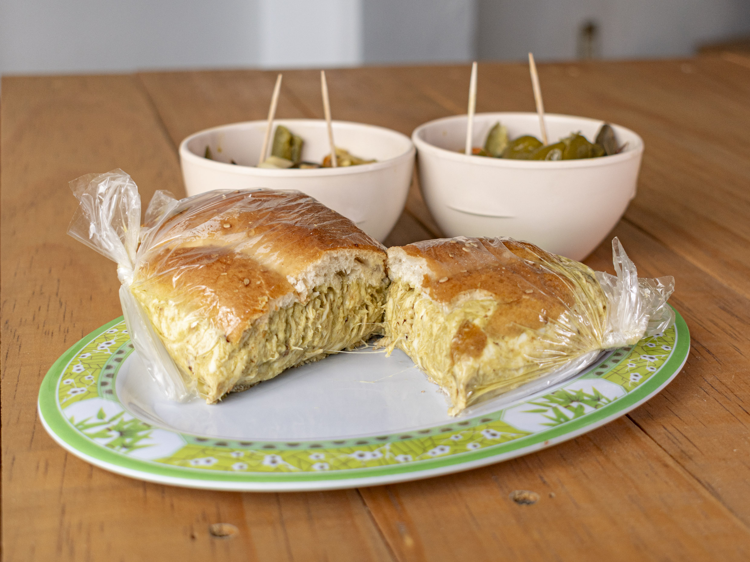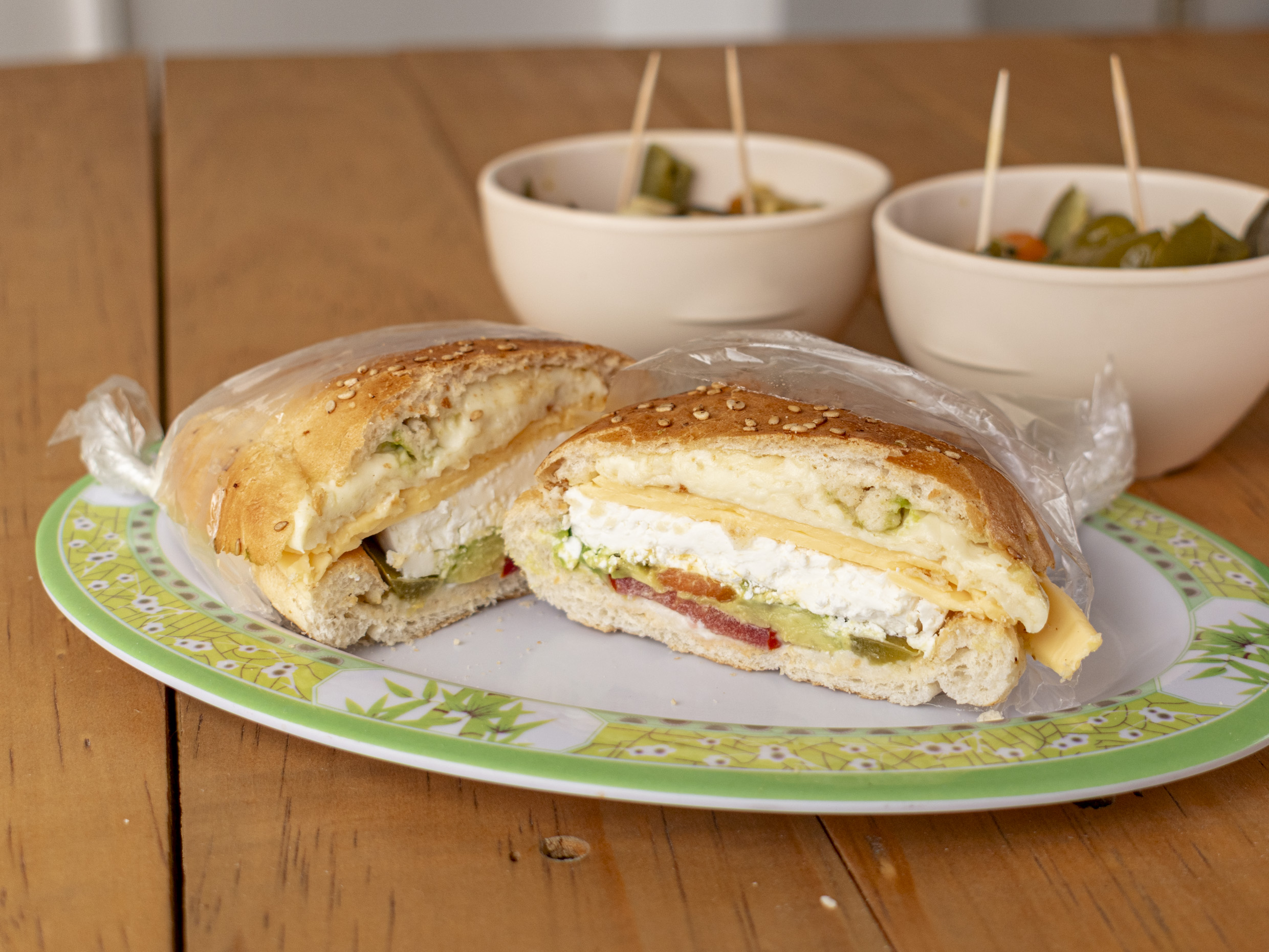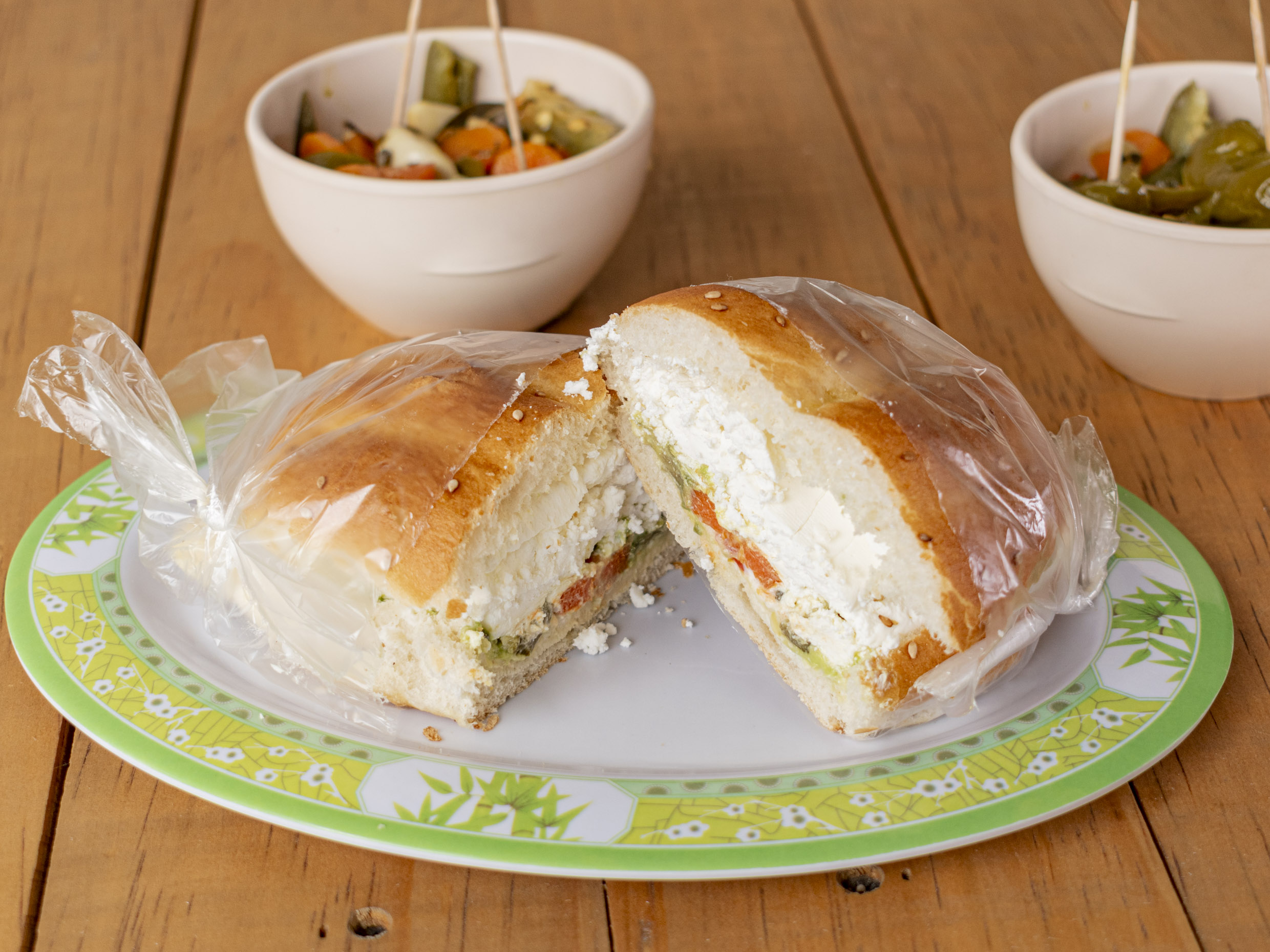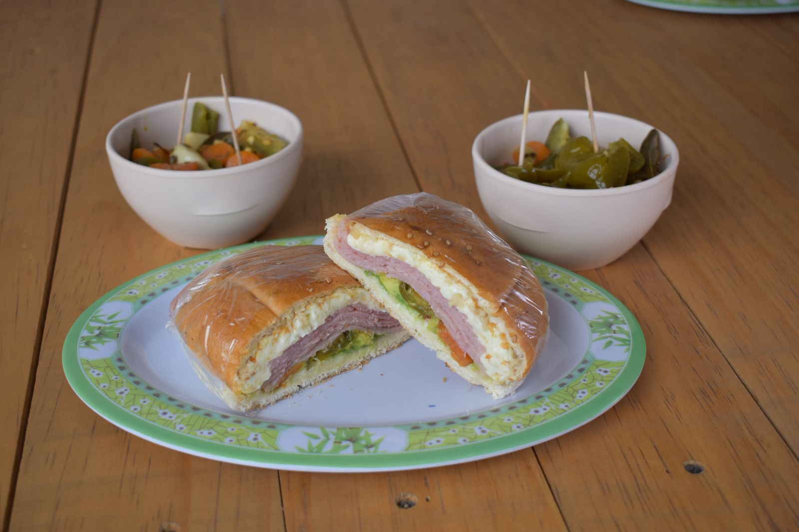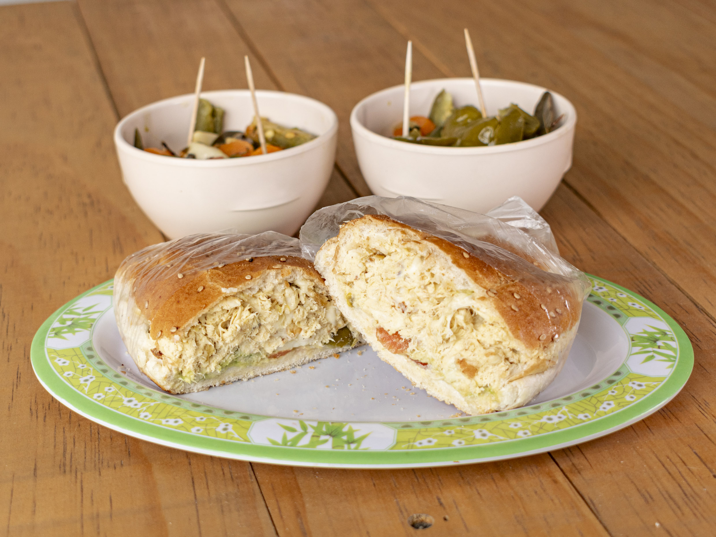 Crema, jitomate, aguacate, chiles en vinagre