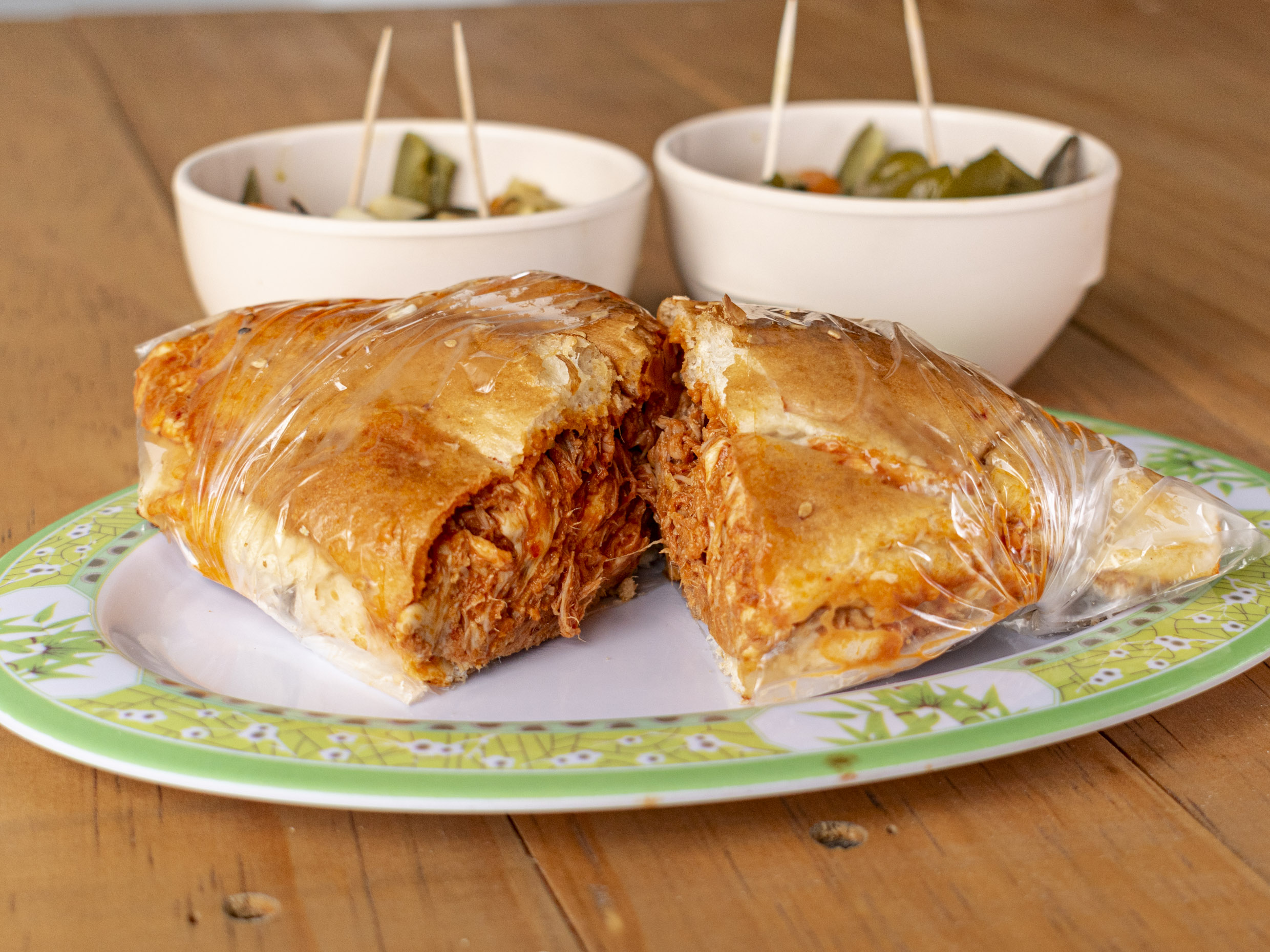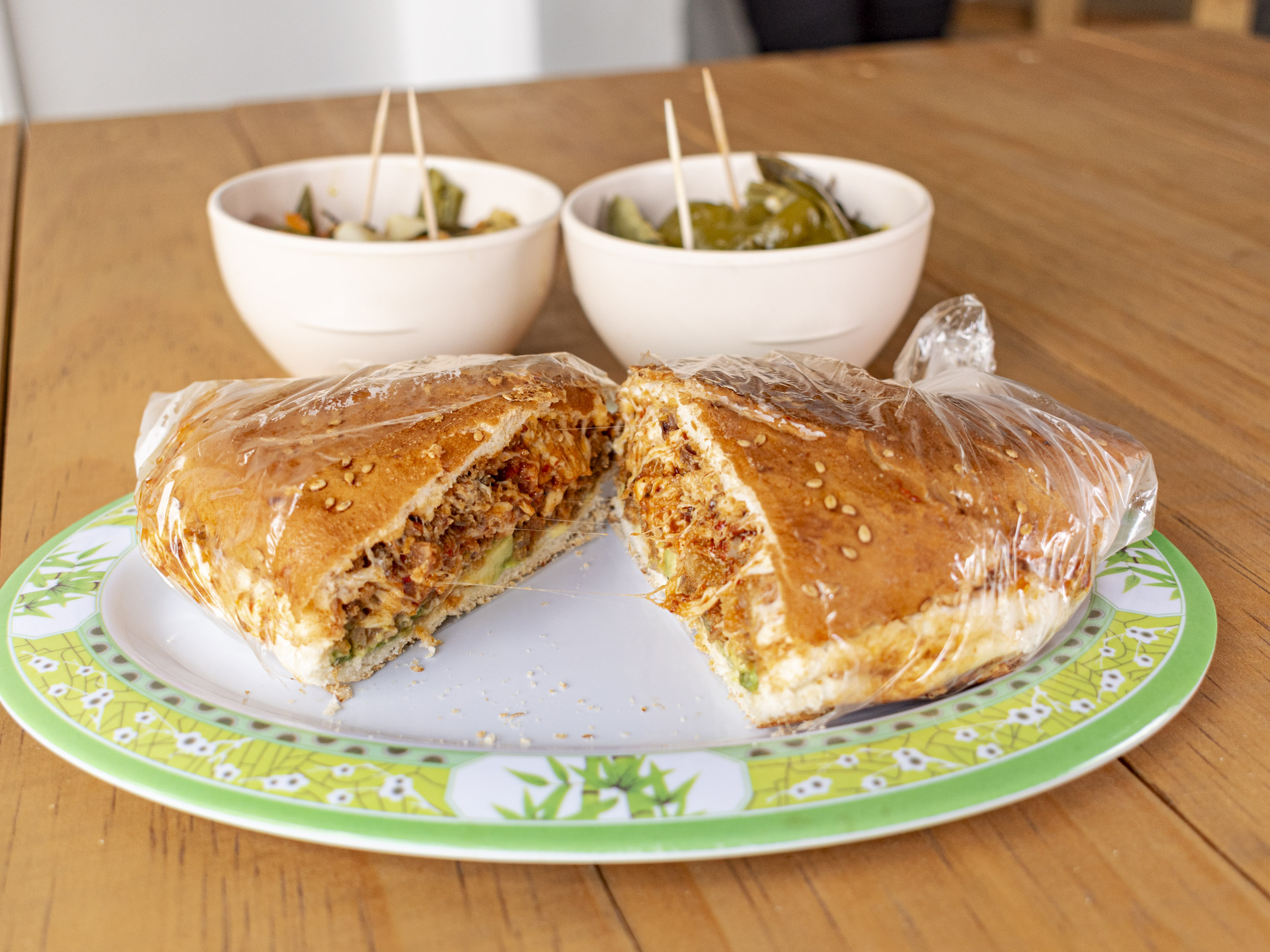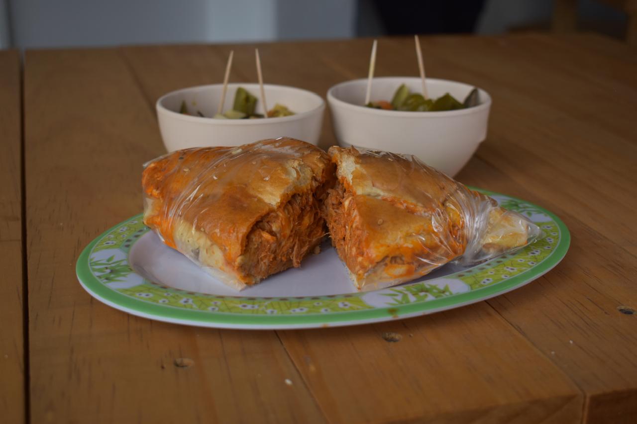 Milanesa, Salchicha, Queso de Puerco, Queso Amarillo, Queso Oaxaca, Crema, jitomate, aguacate y chiles en vinagre