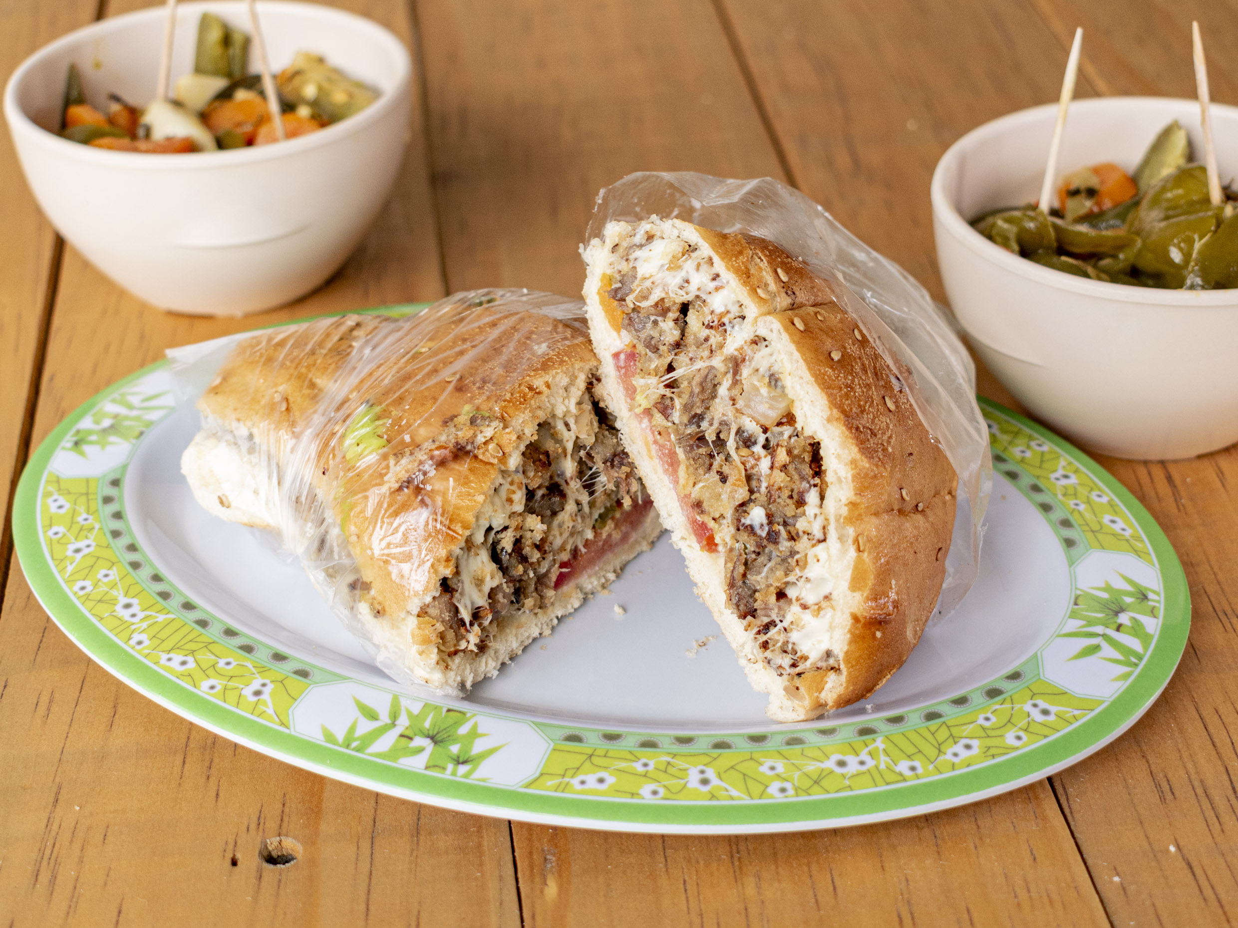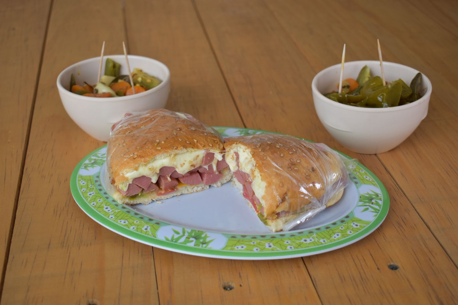 Milanesa, Salchicha, Chorizo, Jamón, Queso Amarillo, Queso Oaxaca, Crema, Jitomate, Aguacate y Chiles en Vinagre