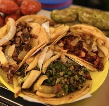 5 Deliciosos taquitos de bistec y chorizo verde en tortilla de maíz del #10.