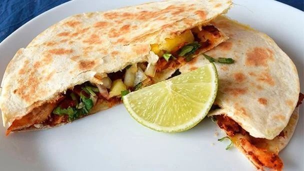 Exquisita gringa de carne al pastor y quesillo en tortilla de harina de tamaño tradicional.